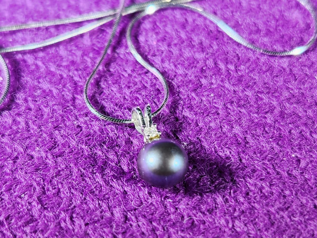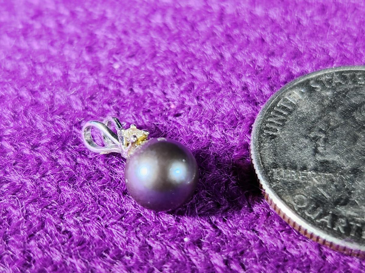 10K Gold Chain with Black Pearl in Gold Mount w Diamond Chip
