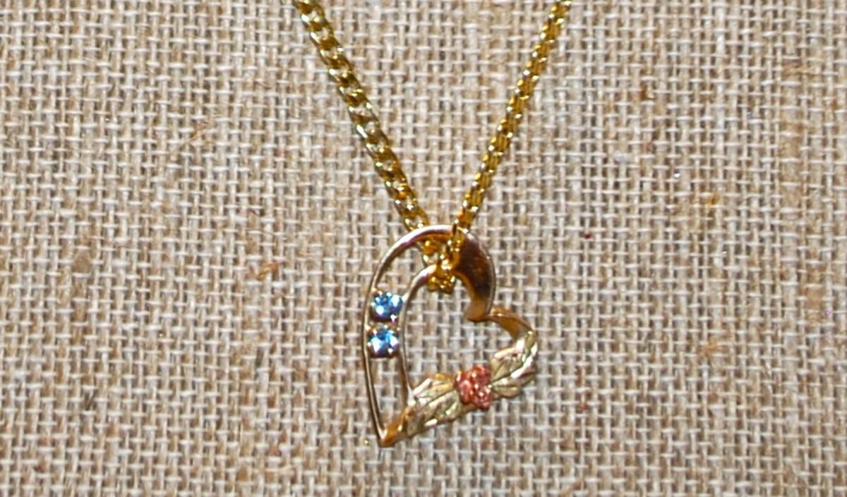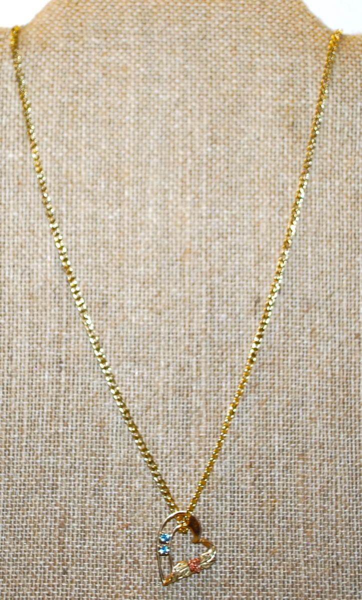 10k Gold Filled Blue Topaz Stones & Rose Gold Flower Heart PENDANT (¾" x ¾") on Gold Tone Chain 18" L