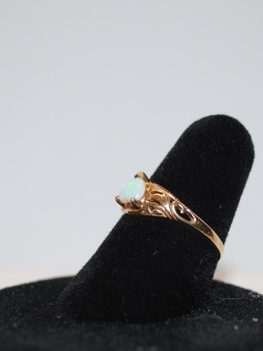 10k GOLD Heart Shaped Opal Ring Size:6 1/4
