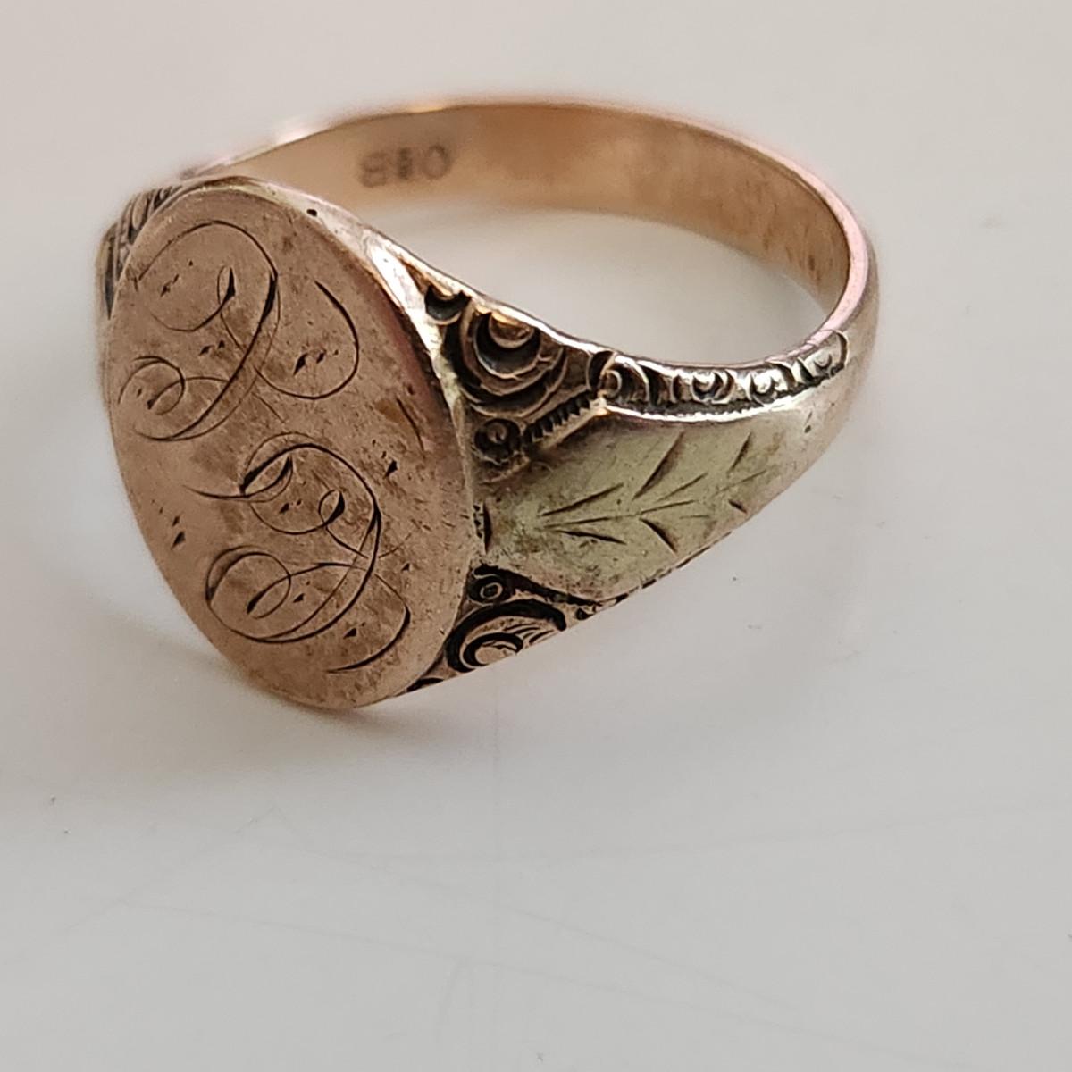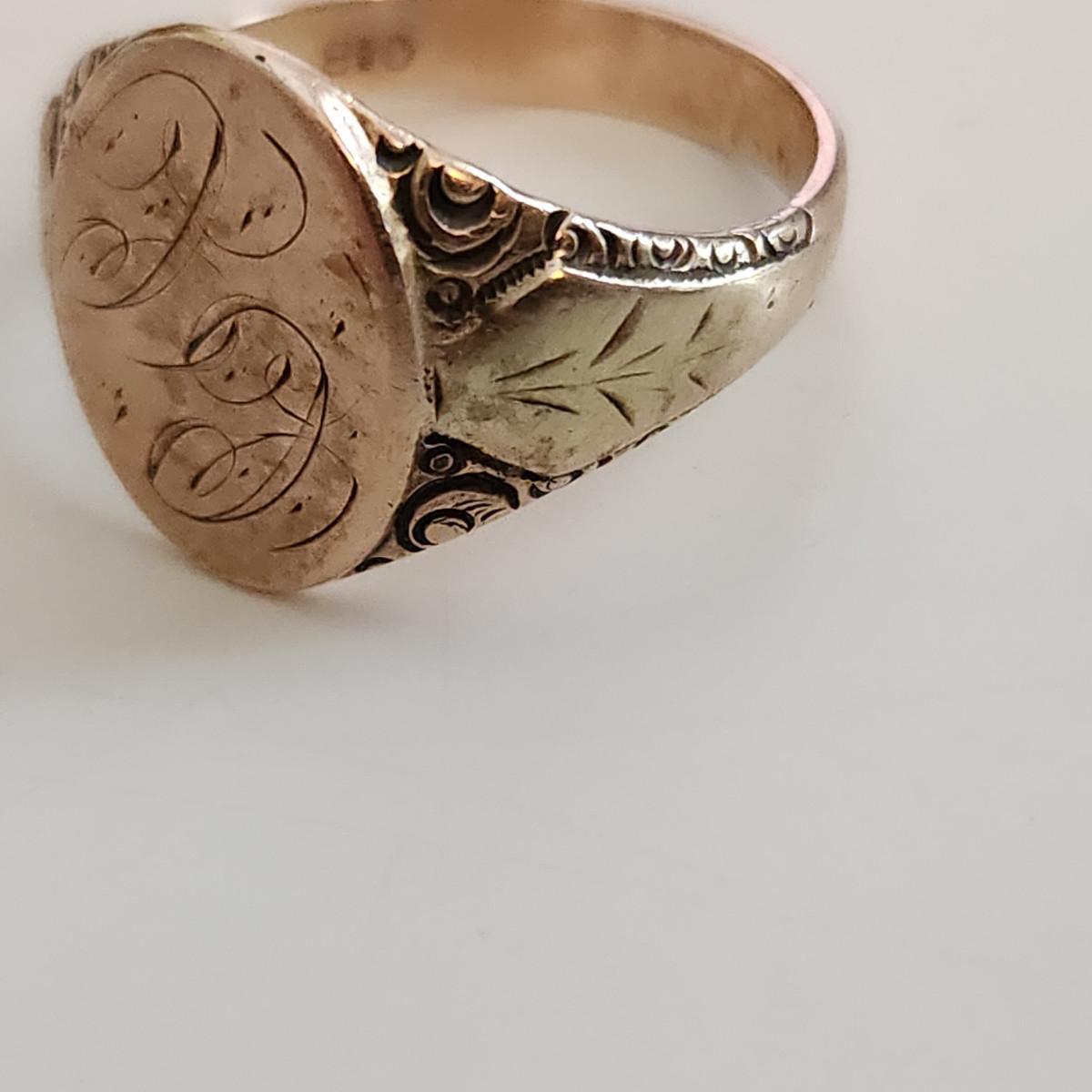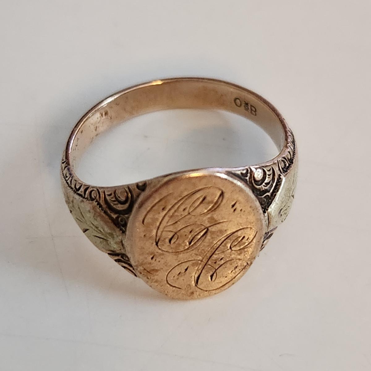 This auction lot is for a 10K Gold Man's Ring. The ring has initials engraved - but they could be easily polished out. The ring is marked 10K - it has not been tested by us. The ring weighs about 7.3 grams. The starting price is the current scrap gold price based on the weight of about 7.3 grams.