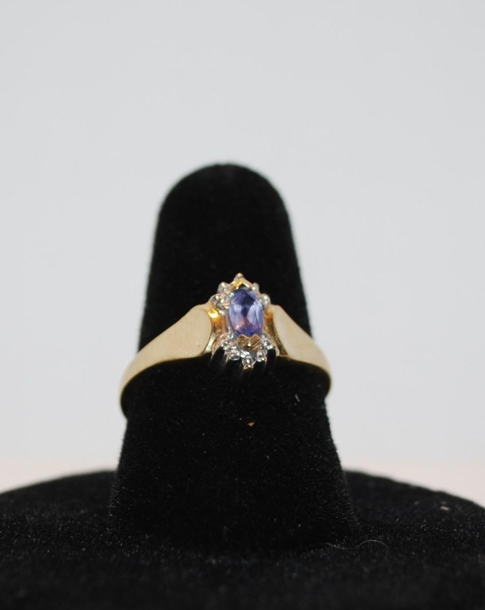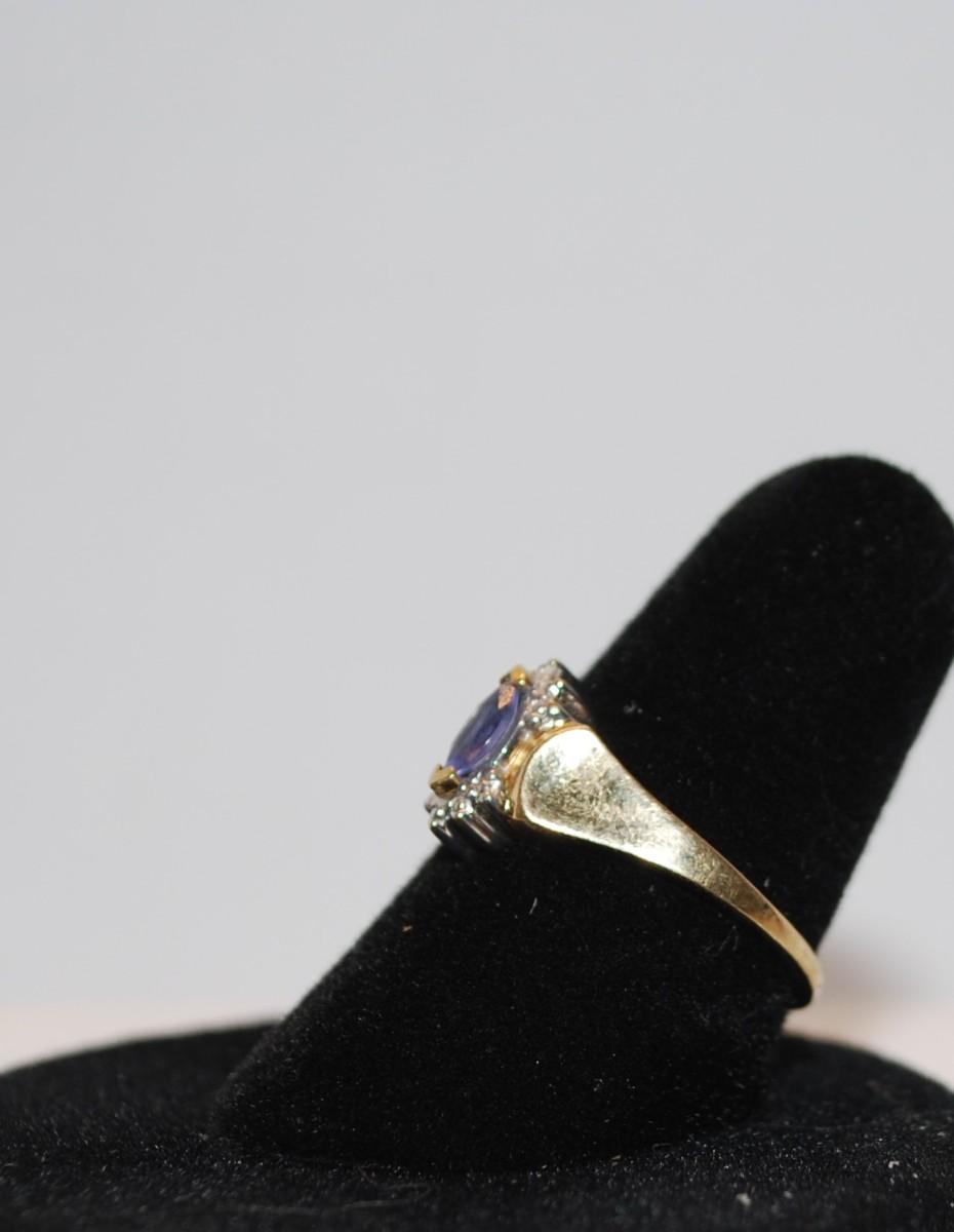 Size: 6¾ - 10k GOLD Marquis Shaped Light Purple Amethyst with Single Diamond (1.8g)
