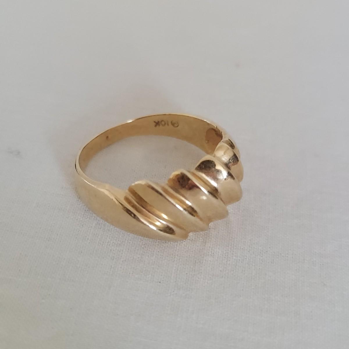 Gold Ring With ripple design. Stamped 10k. Shipping available. All sales are final. No returns or refunds. Please bid accordingly.