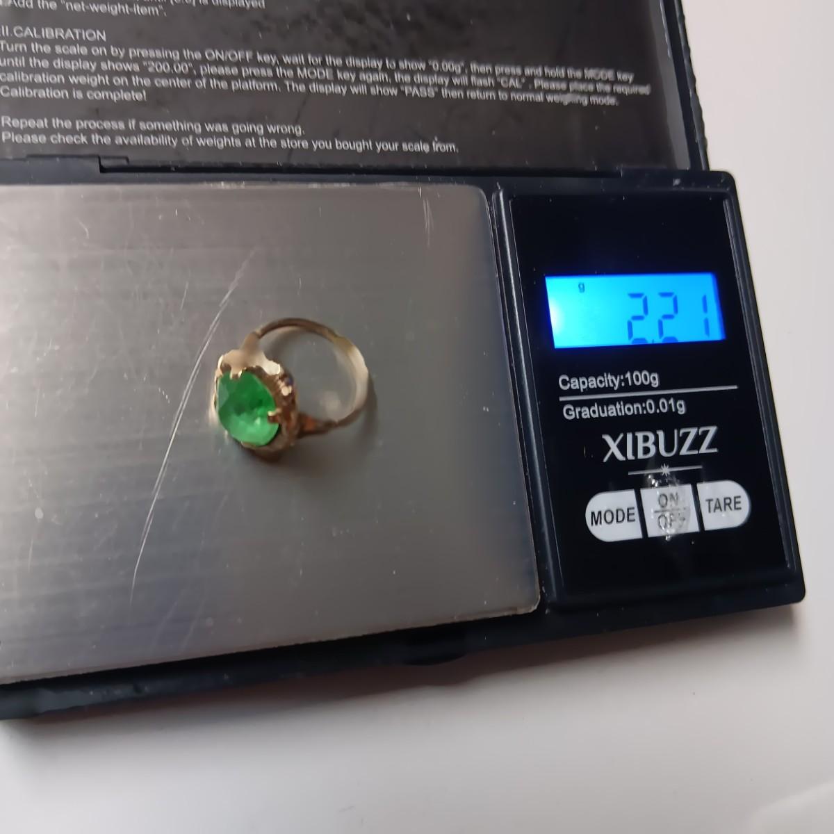 10K GOLD RING WITH A GREEN STONE 2.21g