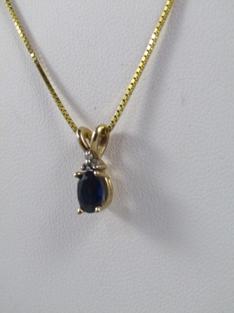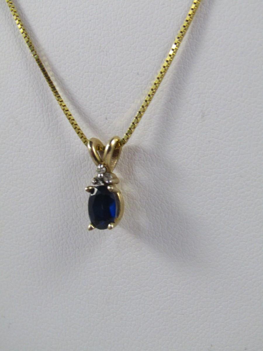 10K Gold Sapphire Pendant and Chain Necklace 20"