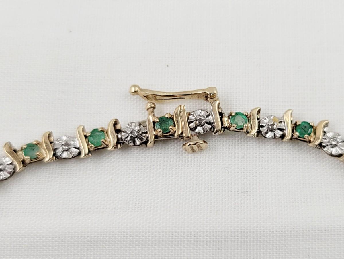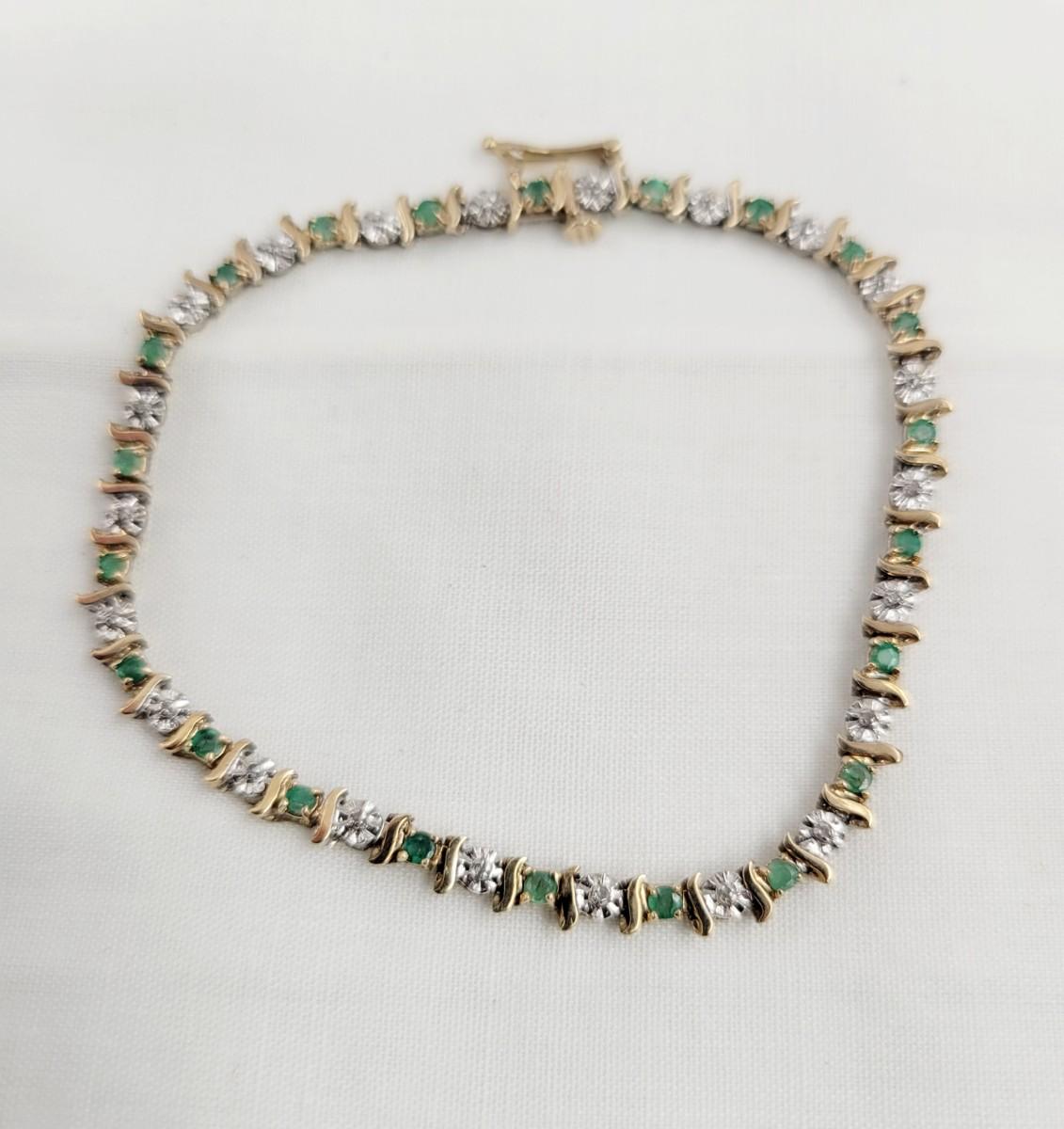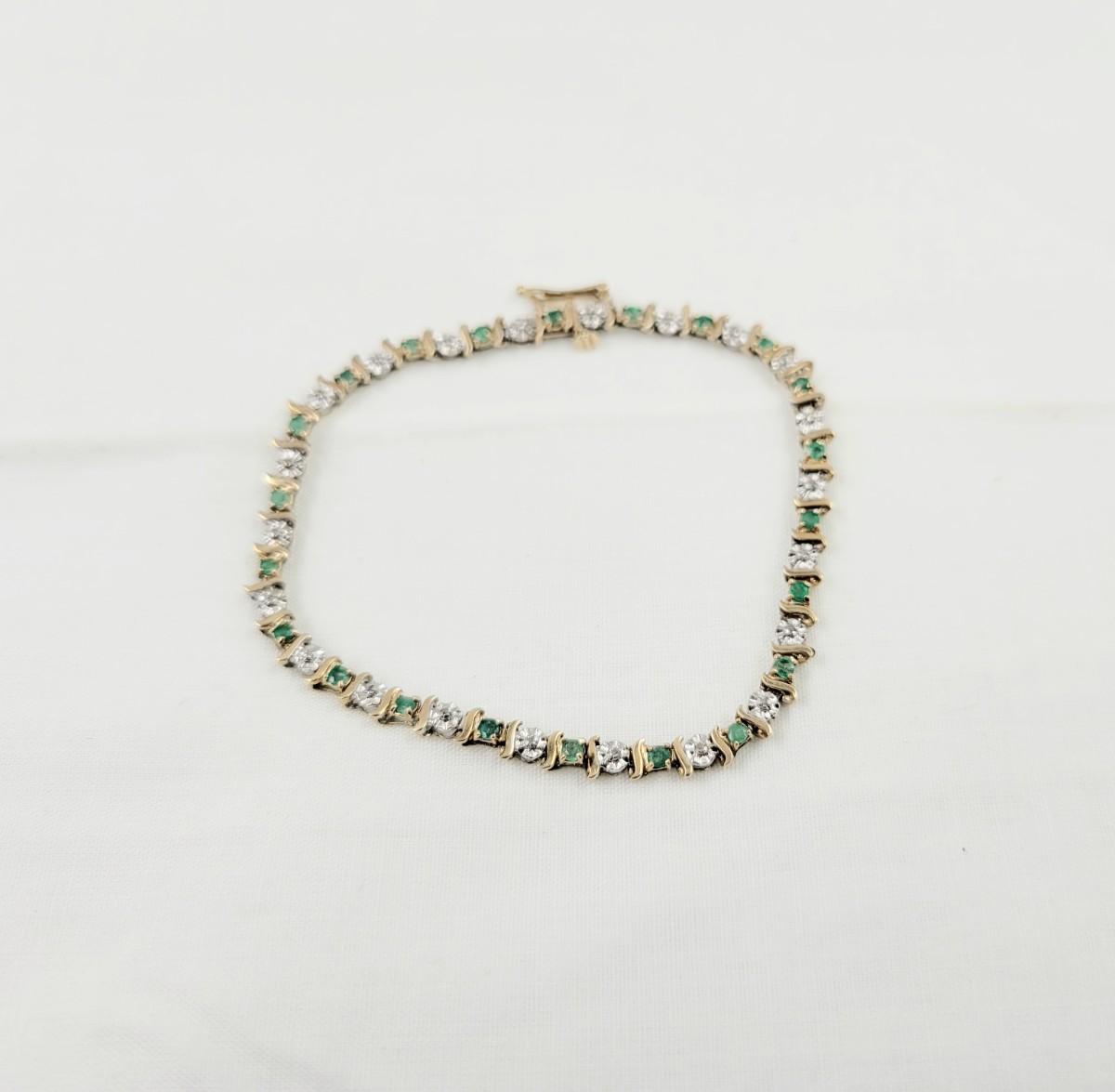 10K JEWELED (GREEN & WHITE) GOLD BRACELET