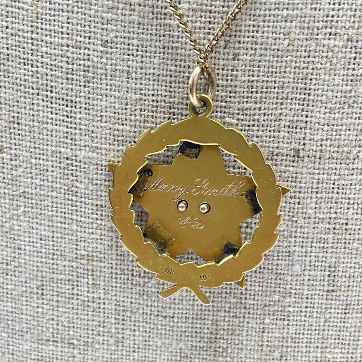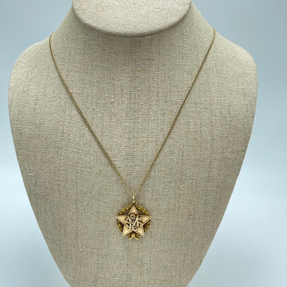 10K pendant with engraved details on the reverse side. The chain is marked 1/20 12k. Starting bid is at or near melt value. Shipping available.