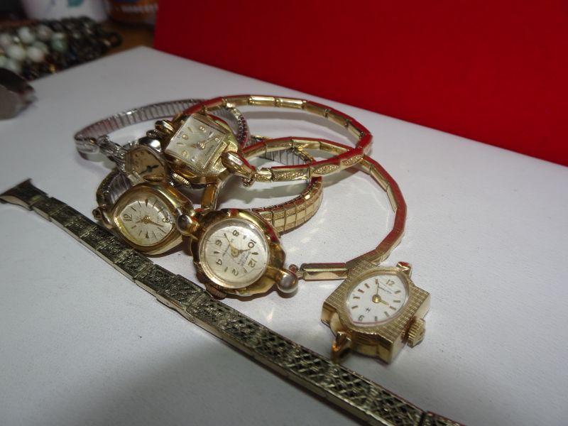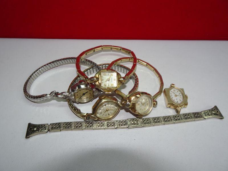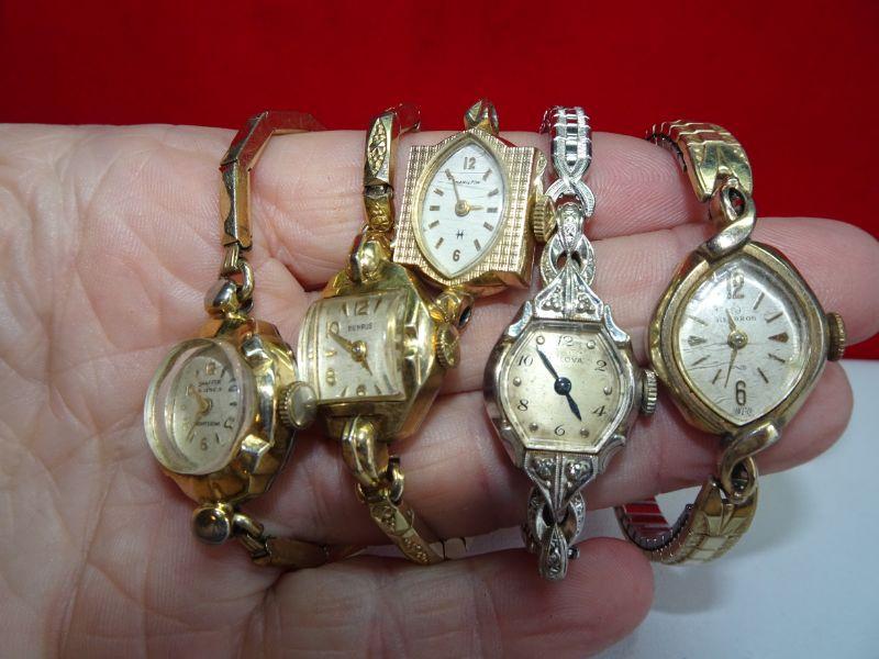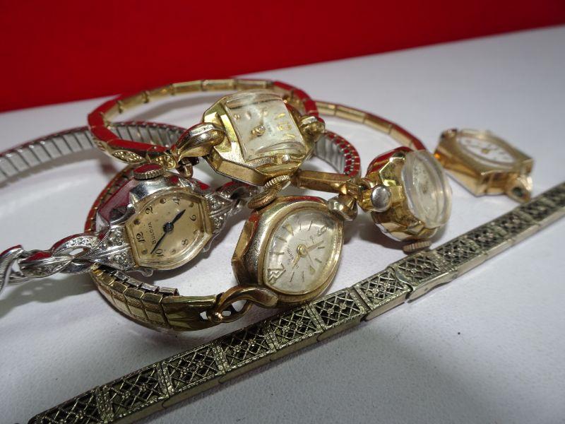 10K RGP Vintage Ladies Wrist Watch Lot, Benrus, Bulova, Hamilton, Shaffer, Halbros
