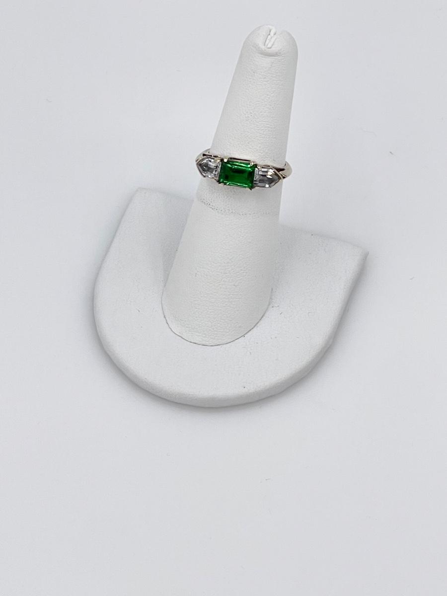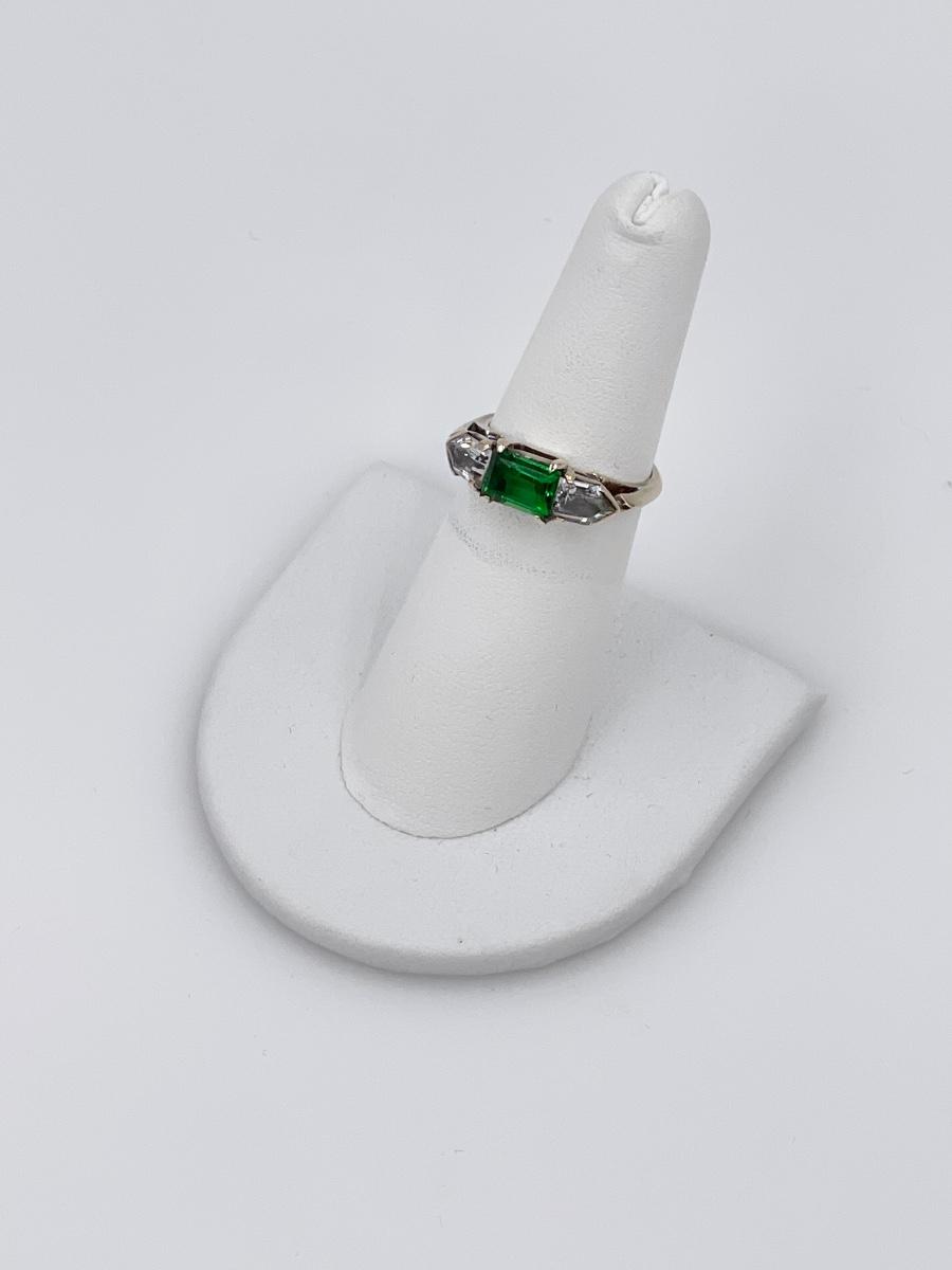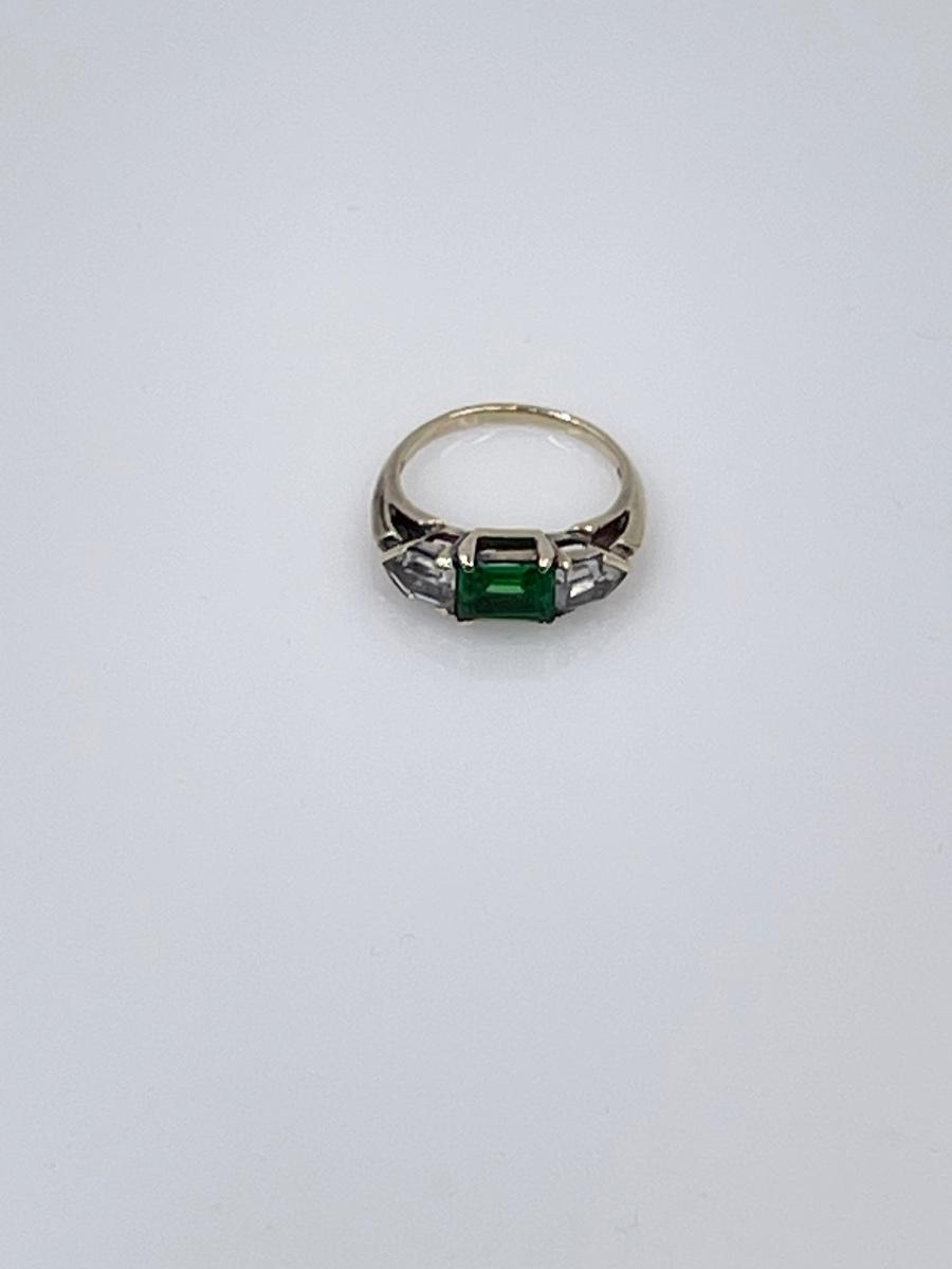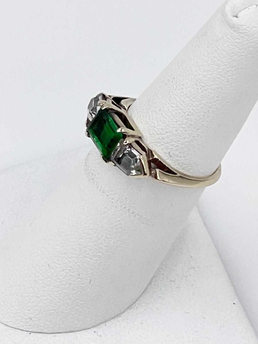 10K ~ Synthetic Emerald & CZ ~ Size 5.75 Vintage Ring