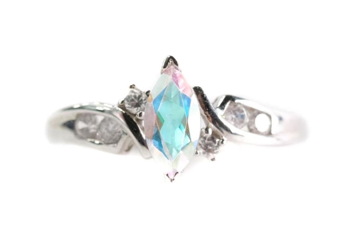 10k White Gold Mercury Mystic Topaz Ring, Size 7