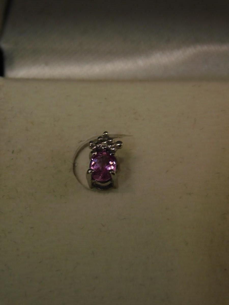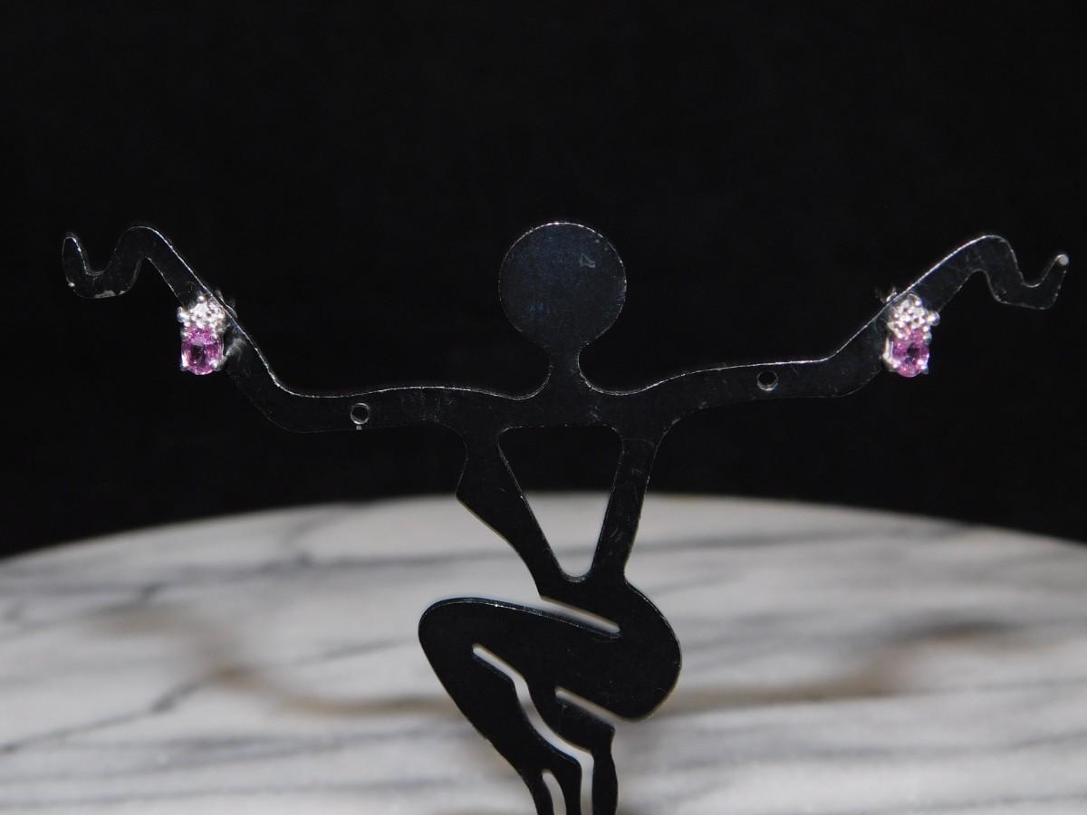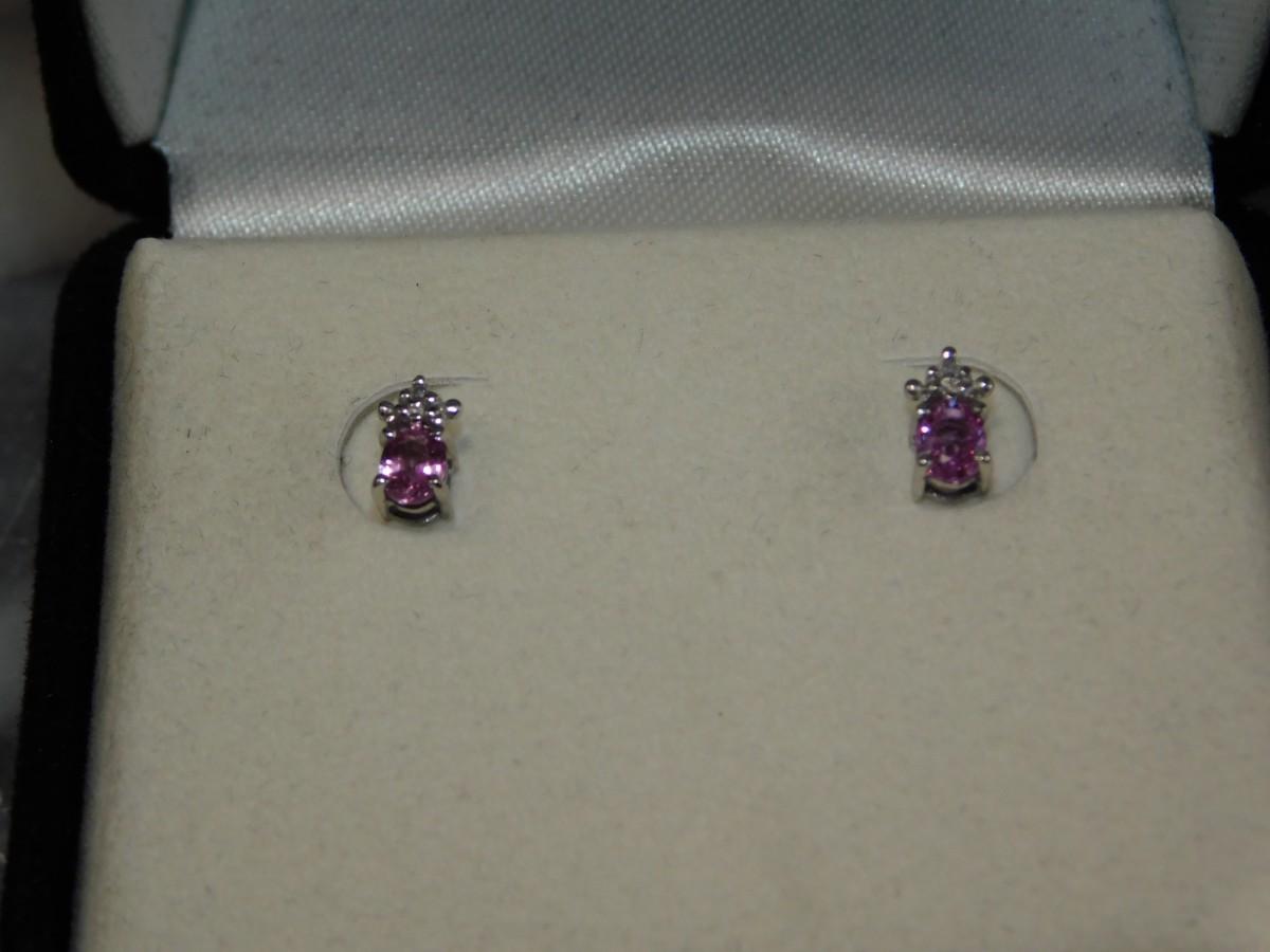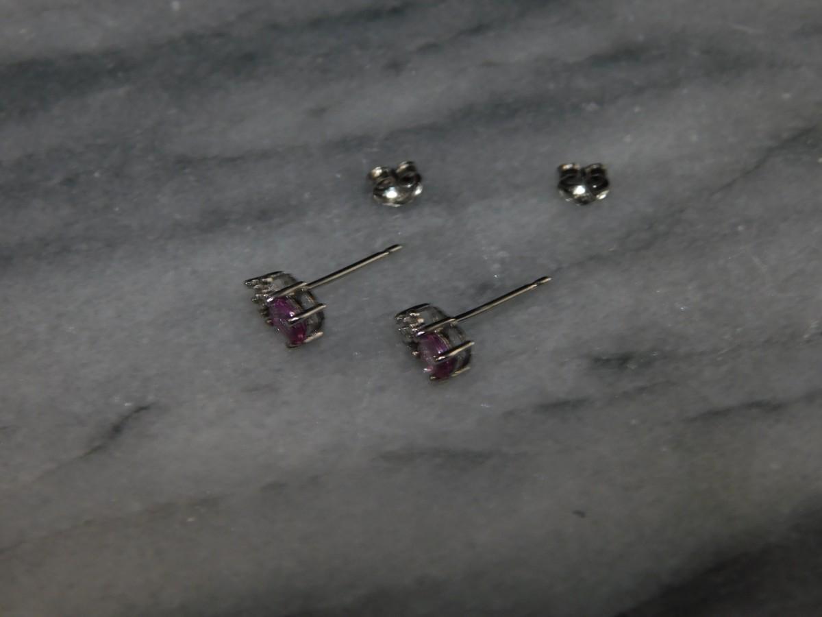10k White Gold Pink Topaz & Diamond Stud Earrings 0.6g