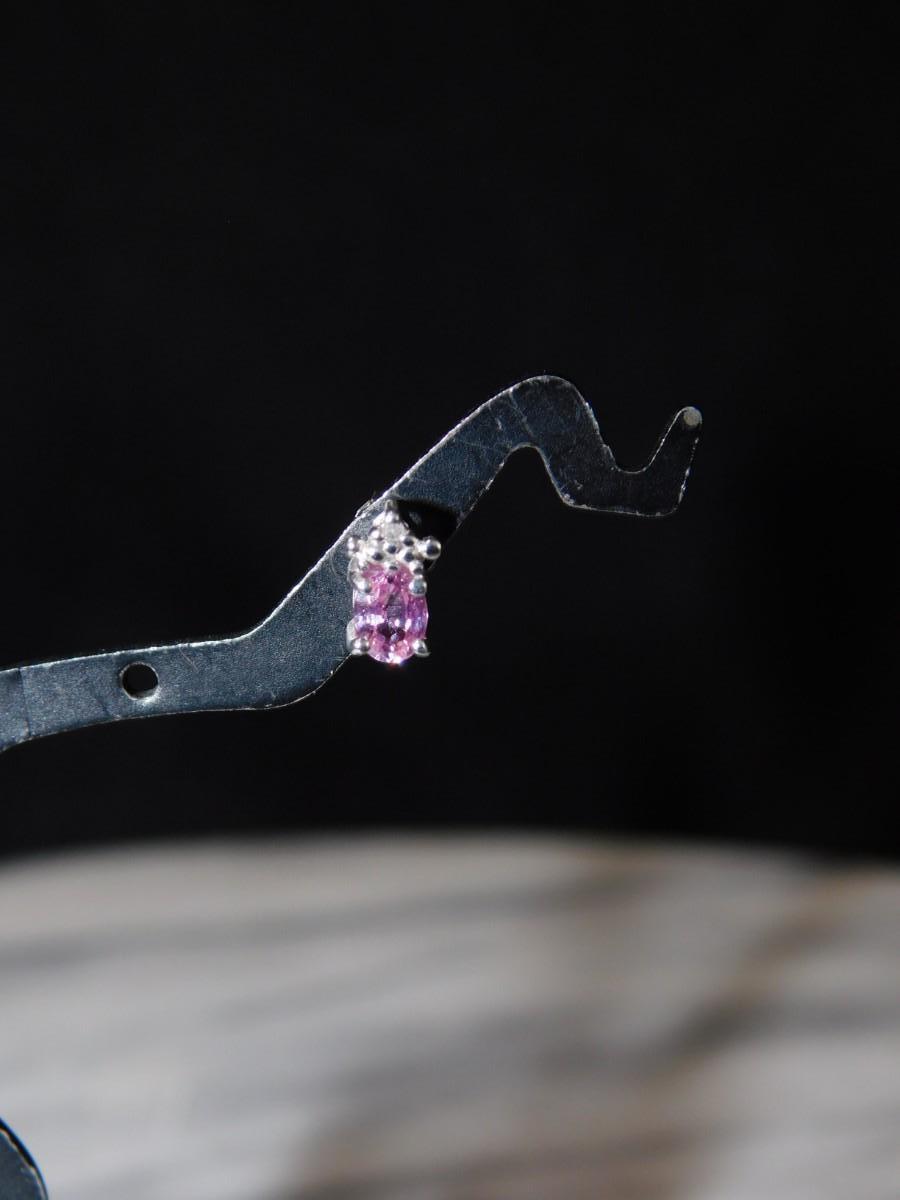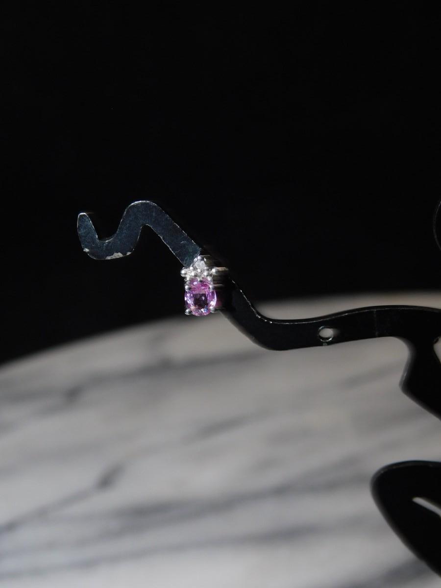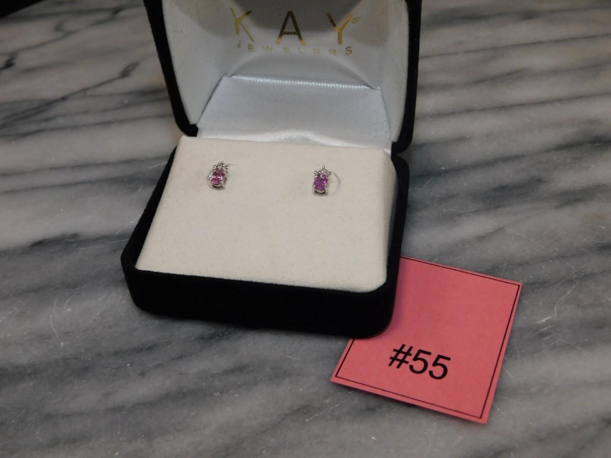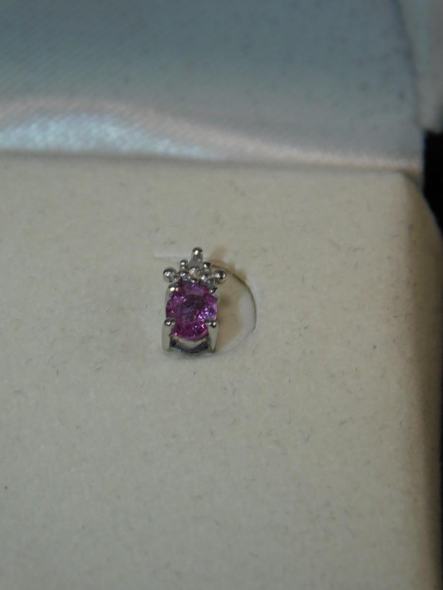 10k White Gold Pink Topaz & Diamond Stud Earrings 0.6g