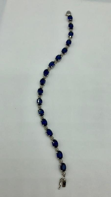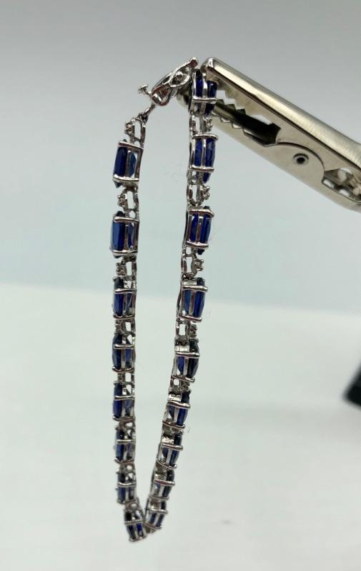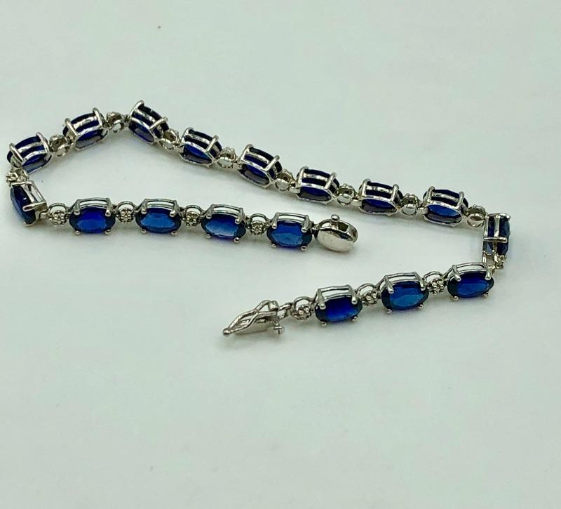 White Gold & Sapphire Tennis. 10k. Measures just over 7". Tiny diamond accents between each sapphire.