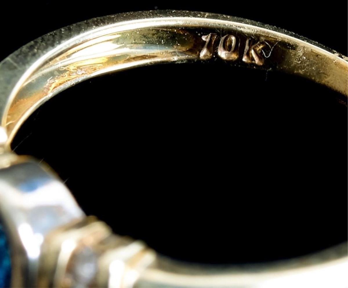 10k Yellow Gold Blue Topaz & Diamond Ring, Size 7