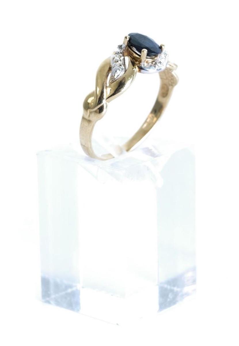 10k Yellow Gold Dark Blue Topaz & Diamond Ring, Size 7