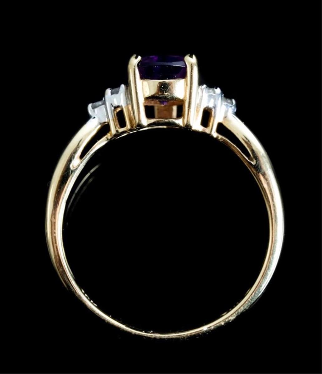 10k Yellow Gold Diamond & Amethyst Ring, Size 7