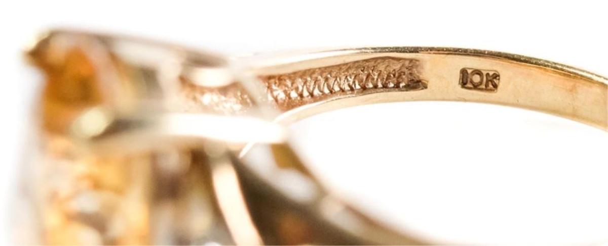 10k yellow gold diamond and citrine ring, size 6.5. Stamped 10k LGL (Leer Gem Ltd). Approx. overall weight 3.09 grams.