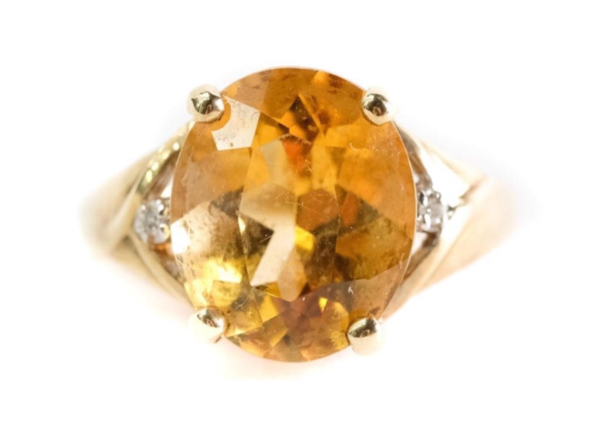 10k Yellow Gold Diamond & Citrine Ring, Size 6.5