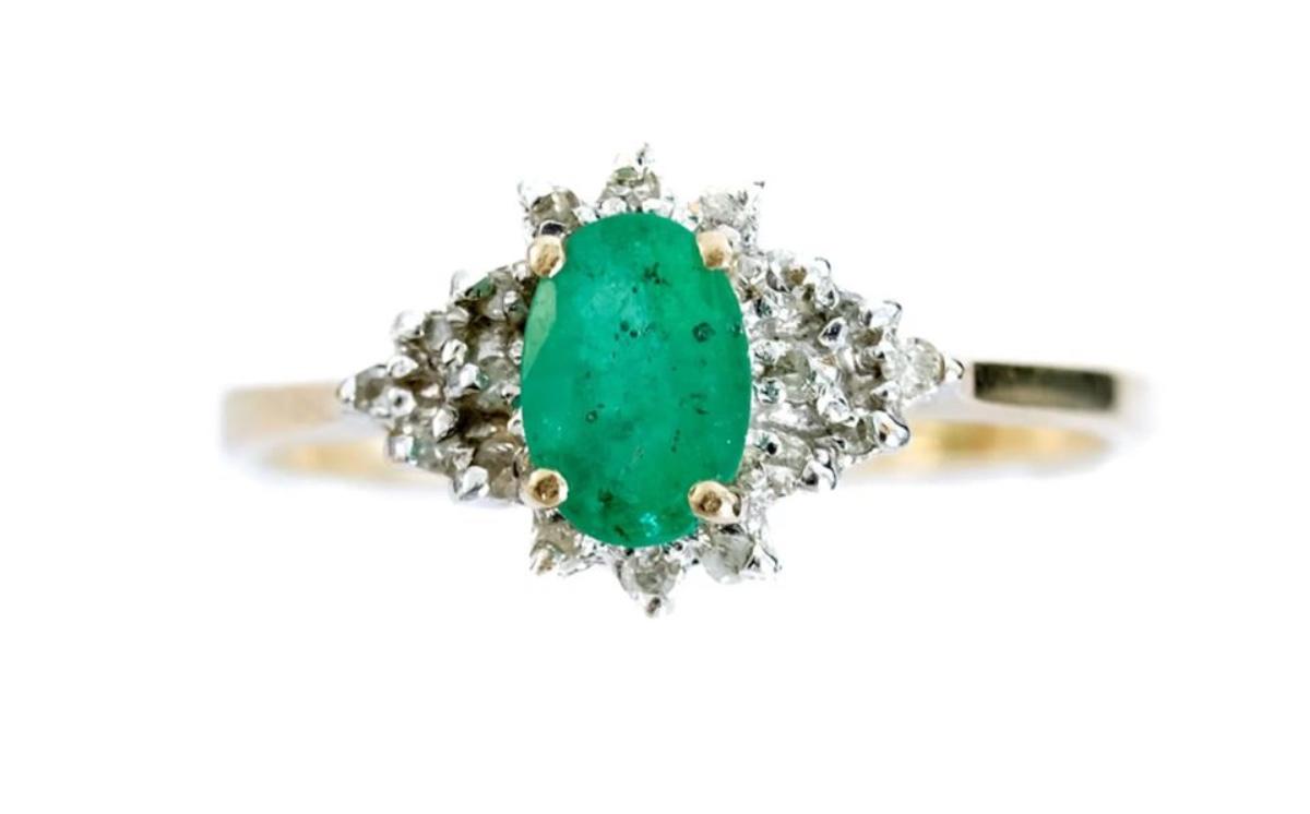 10k Yellow Gold Diamond & Emerald Ring Size 7