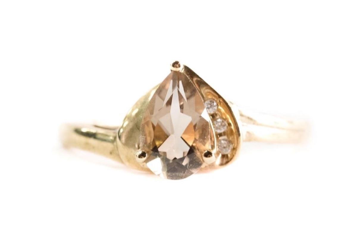 10k Yellow Gold Diamond & Smokey Quartz Ring, Size 7
