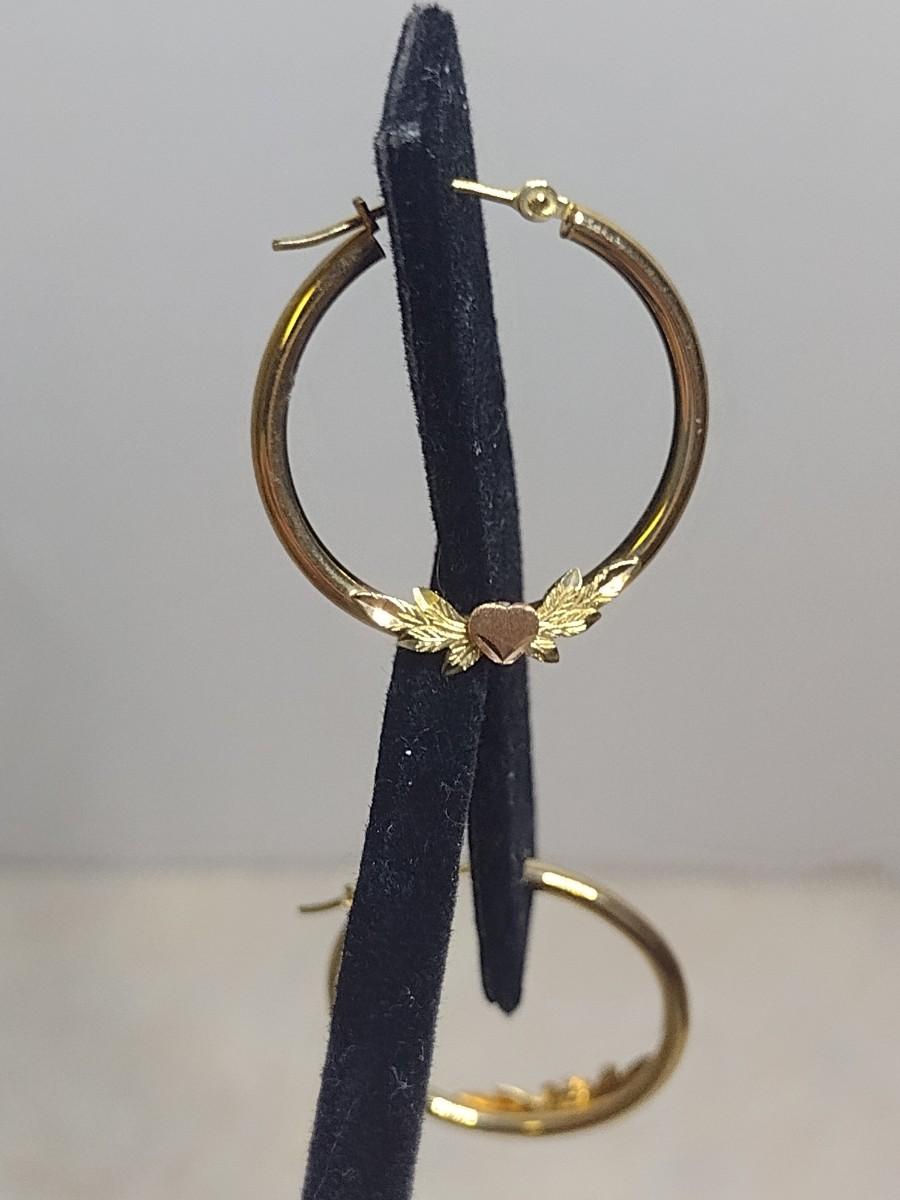 10K Yellow Gold Heart Accent Hoop Earrings Total Weight 1.6 grams (#29)