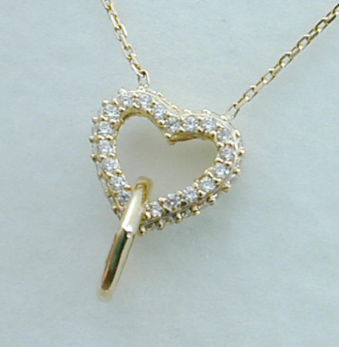 10k Yellow Gold Intertwined Heart Necklace Diamond Encrusted