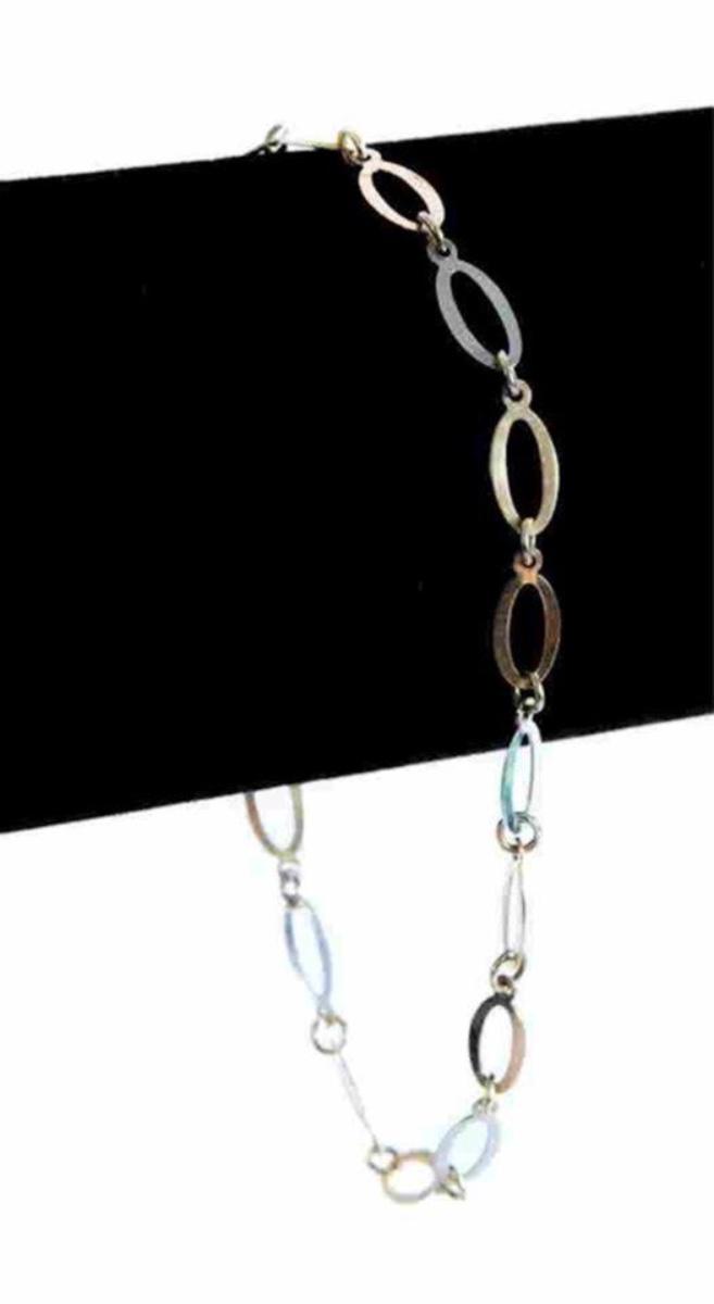 10k Yellow, Rose & White Gold Chain Link Bracelet