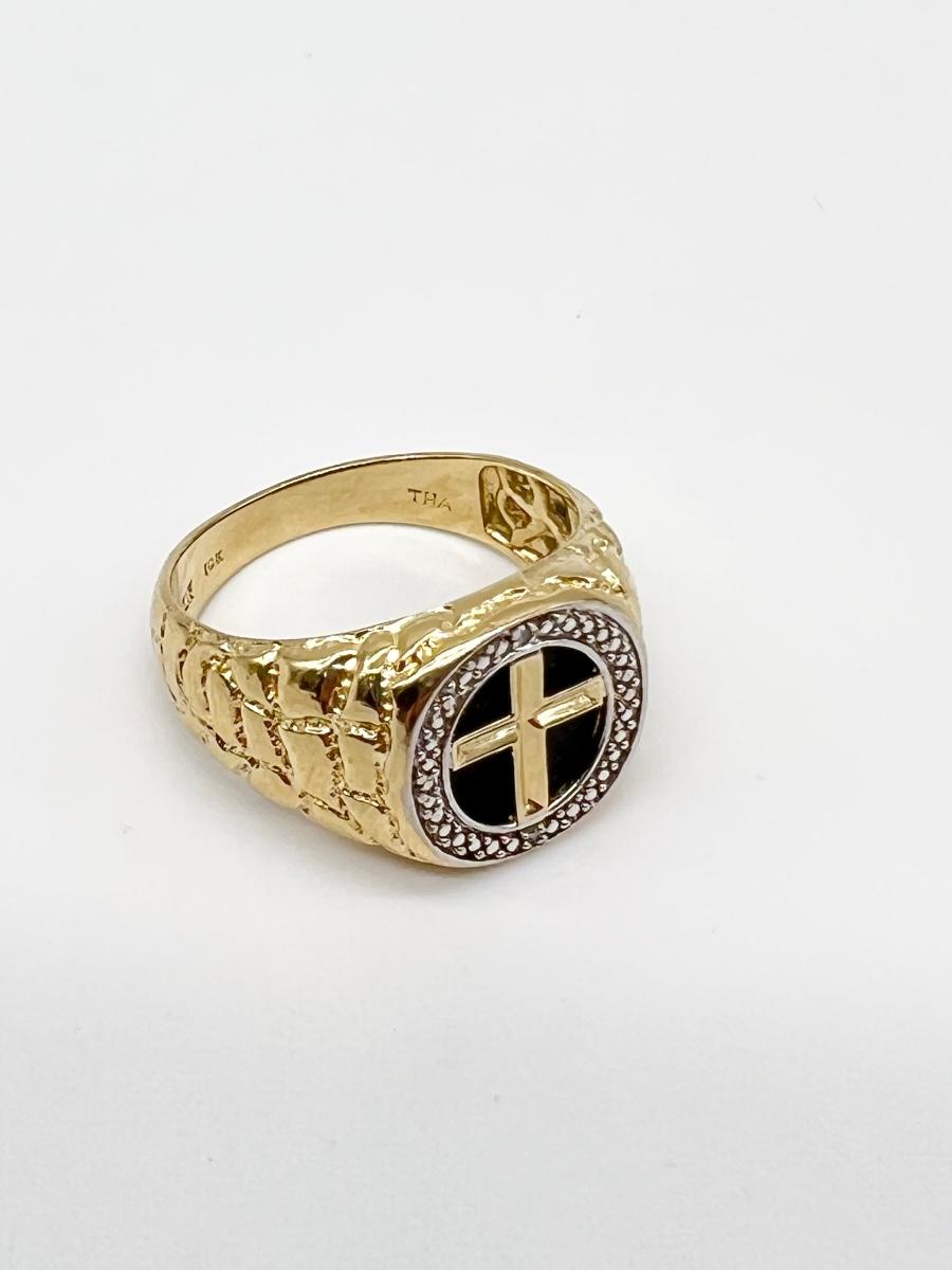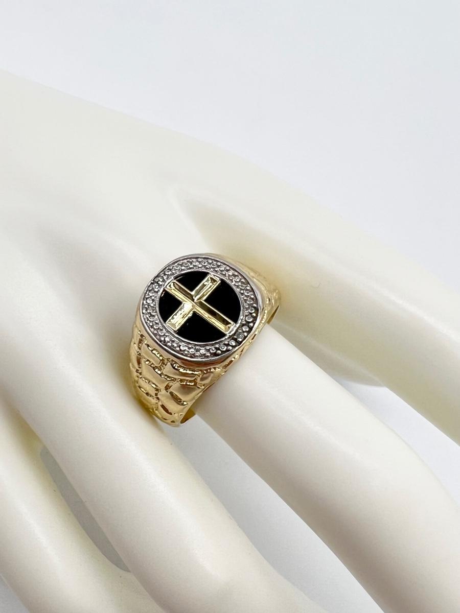 10K YG ~ Black Onyx Cross Diamond Ring ~ Mens Size 11