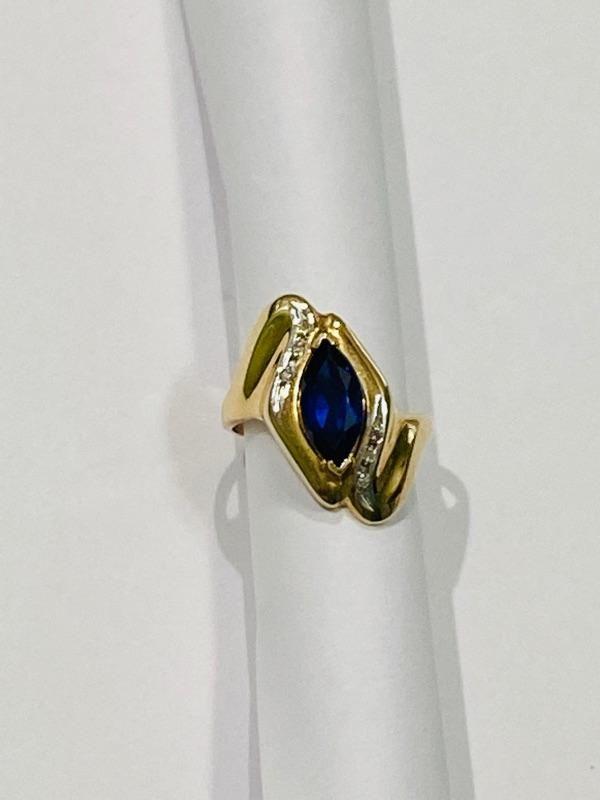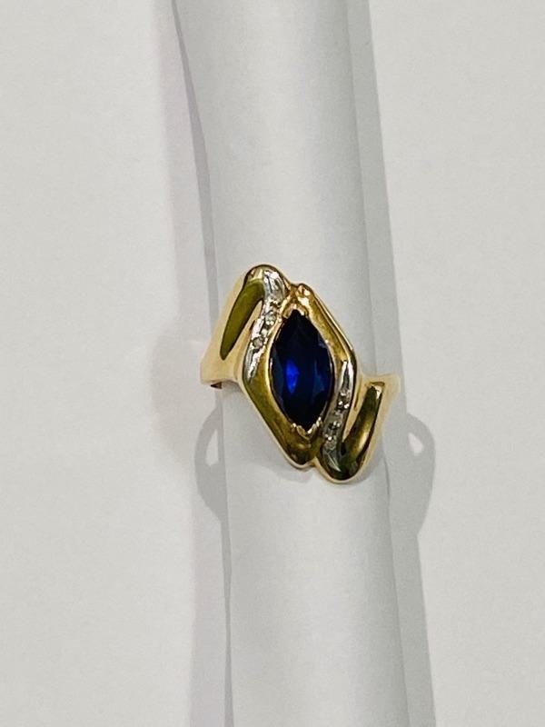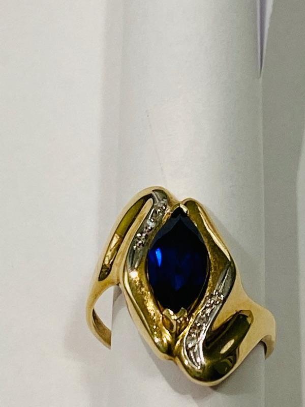 10K YG Sapphire & Diamond Dinner Ring - Sz 8