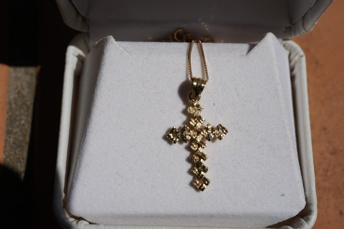 10kt GOLD DELICATE CROSS AND CHAIN , BOTH MARKED 10KT