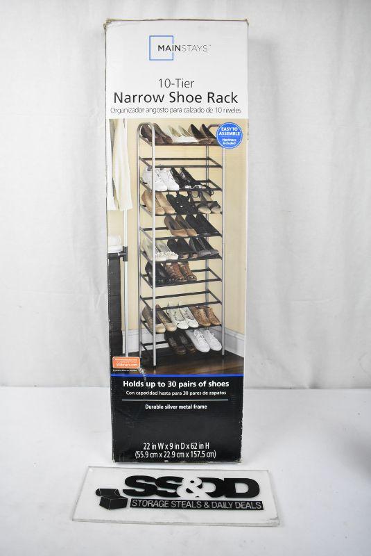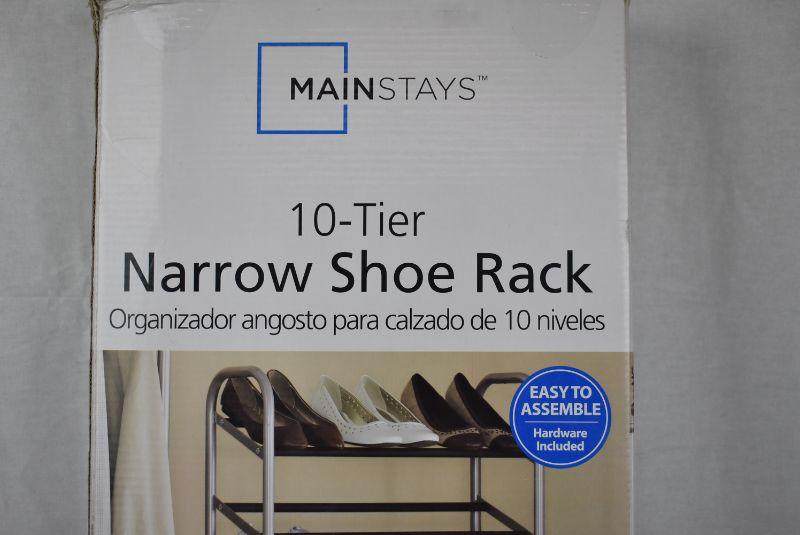 10-Tier Narrow Shoe Rack, Holds up to 30 pairs of shoes, by Mainstays - New