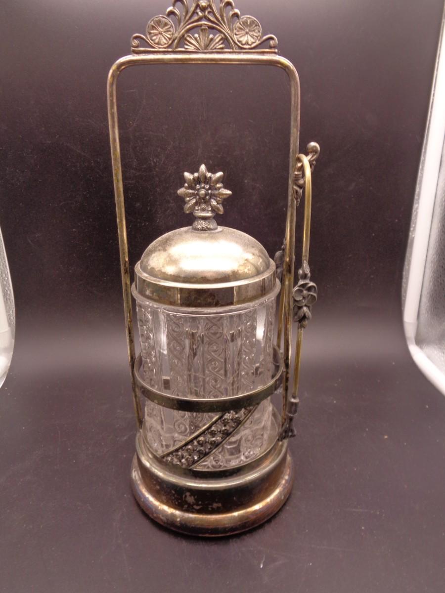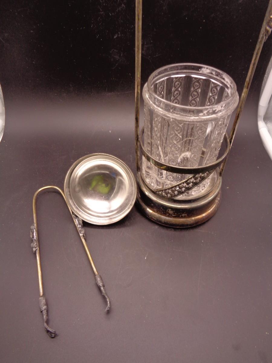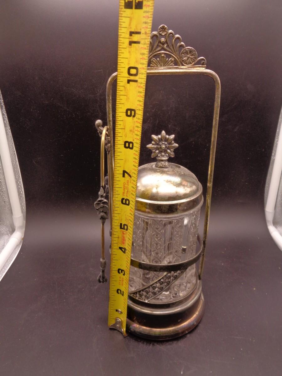 11 3/4" Aurora Quadruple Plate Silverplate Pickle Castor w/Tongs Early American Pattern Glass #101