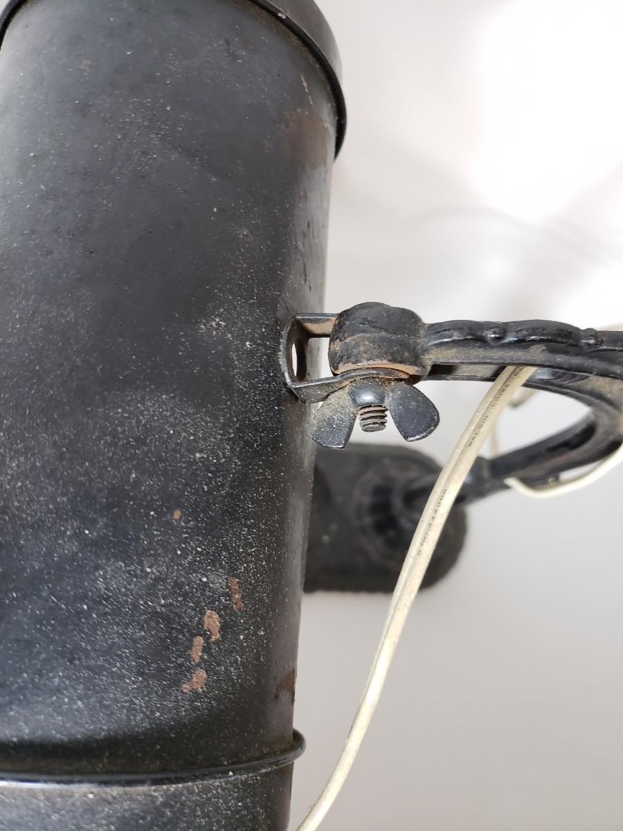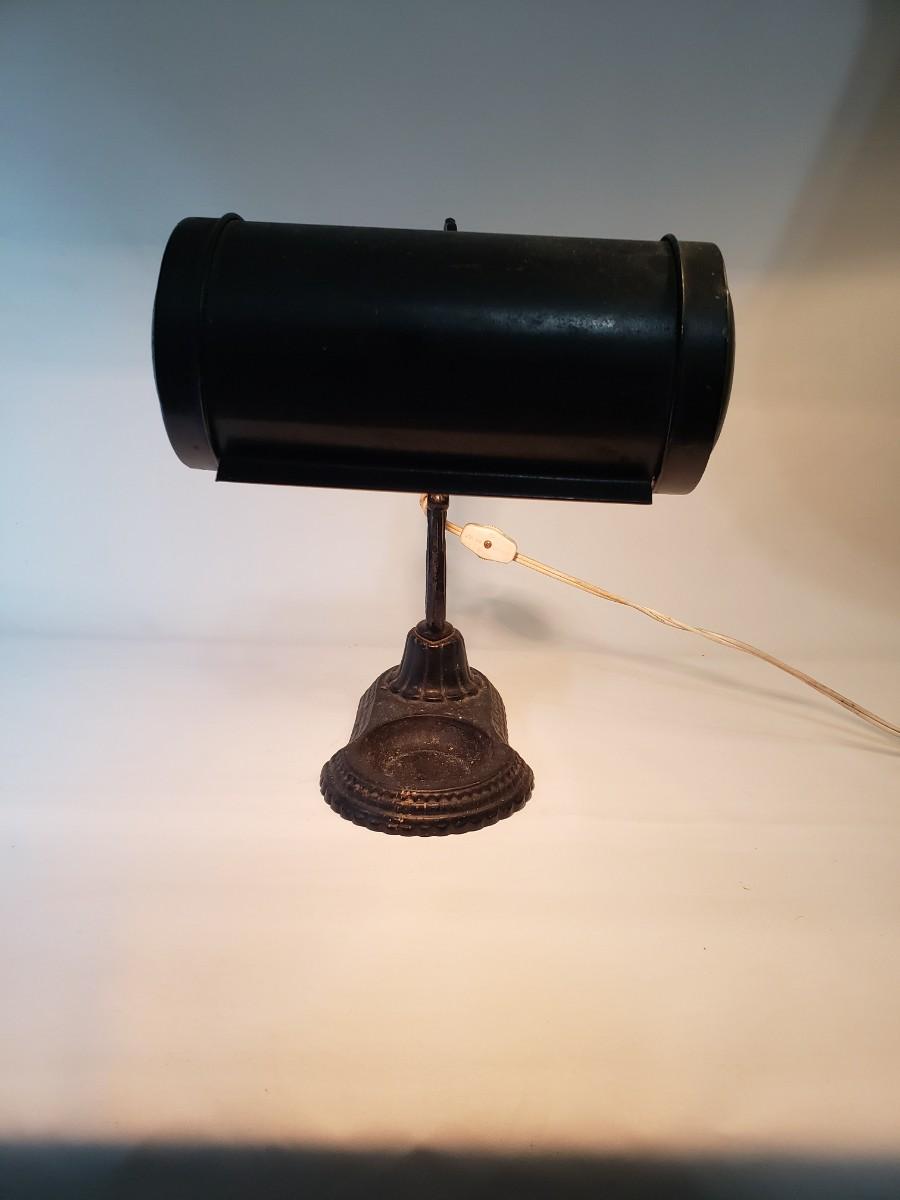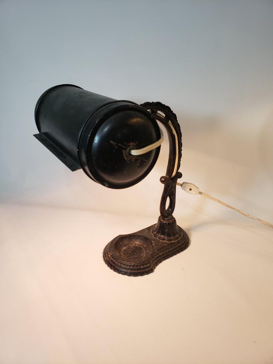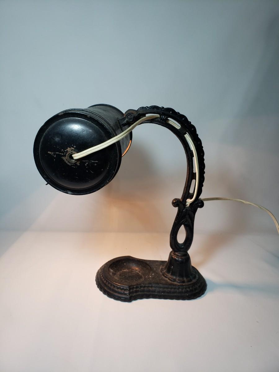 Antique lamp with adjustable neck. Lamp has been re-wired with a new switch.