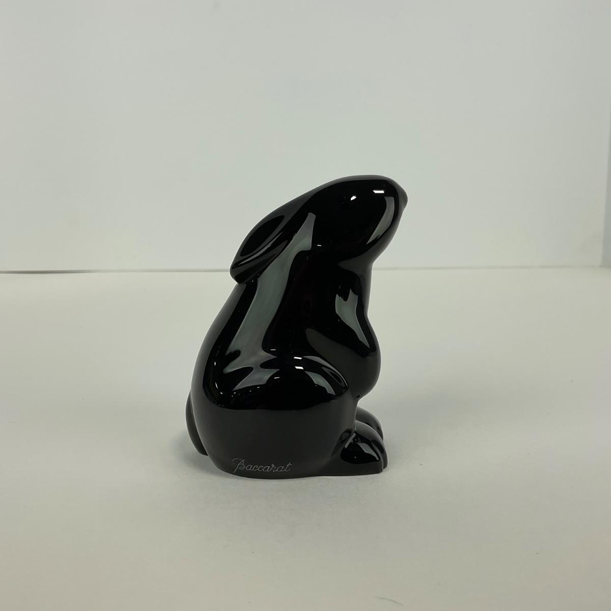 -11- BACCARAT | Black Glass Rabbit | Marked & Signed
