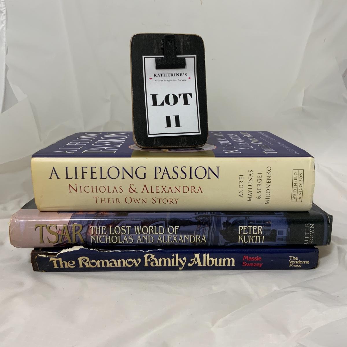 From the Estate of Peter Radovanovich: Three comprehensive books on the Romanov Family. A Life Long Passion, Nicholas & Alexandra; Their Own Story by Andrei Maylunas & Sergei Mironenko | The Lost World of Nicholas and Alexandra; TSAR by Peter Kurth | The Romanov Family Album by Marilyn Pfeifer Swezey. Books themselves are in good used condition, dust covers show varying states of wear. Please see photos for details and condition. ::: Shipping is available on this lot. If you require shipping you must let us know at the close of the auction. We will coordinate with you after the item has been won. Shipping fees will include insurance up to or exceeding the value of all items being mailed. If you have any questions regarding this lot please contact the auctioneer either via this website, by direct email or by phone. PICK UP TIMES and other important information can be found in the TERMS and DESCRIPTION of the auction. Please take a look for pertinent information. Thanks!