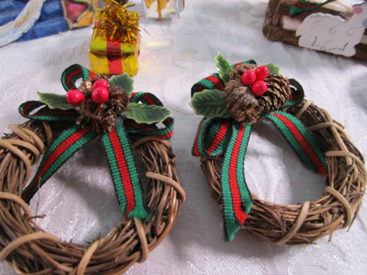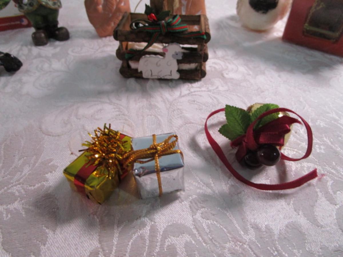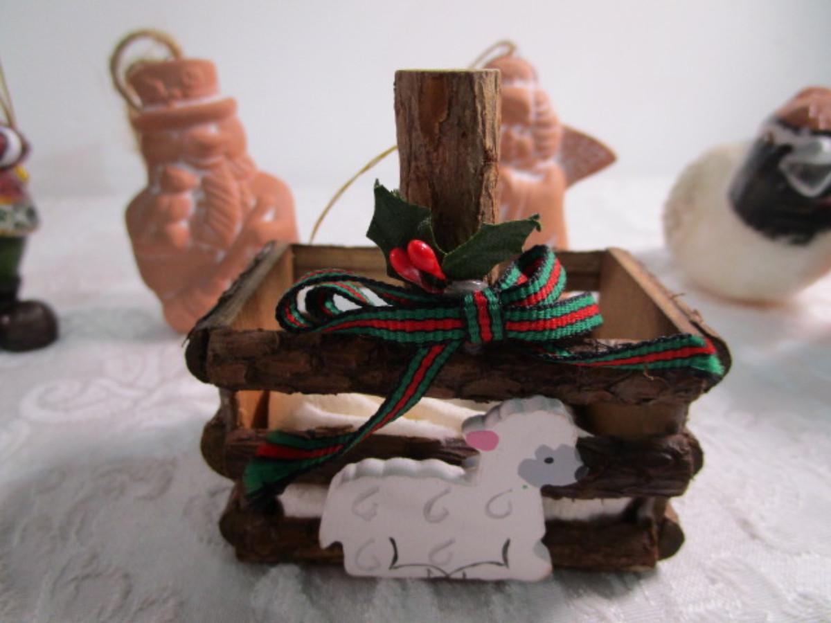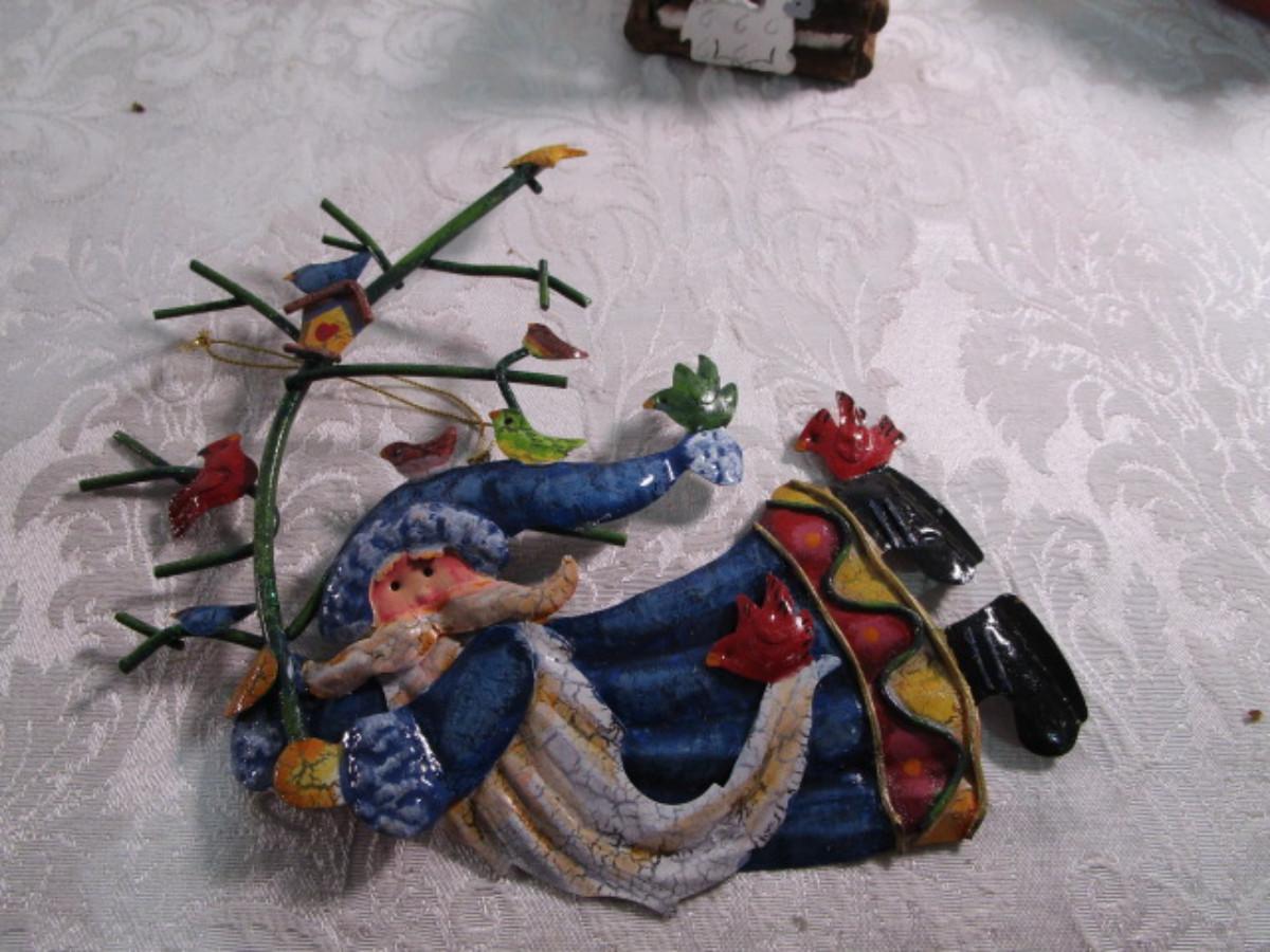 11 Christmas ornaments, 1 suction cup wreath holder, bird candle