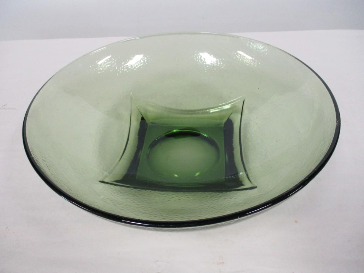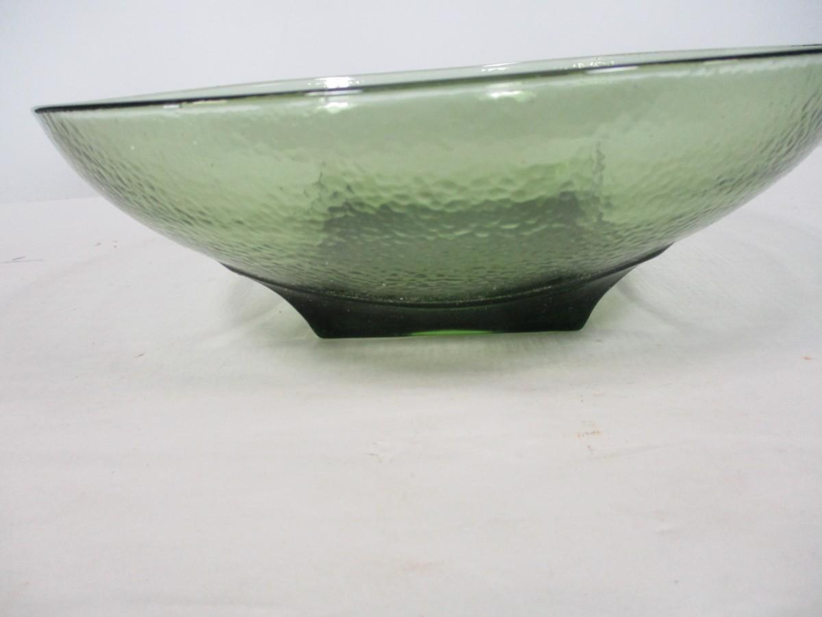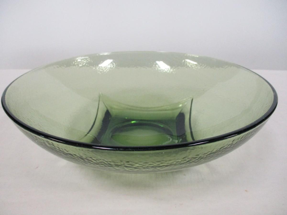 11" Hazel Atlas Pebblestone Glass Bowl Avocado
