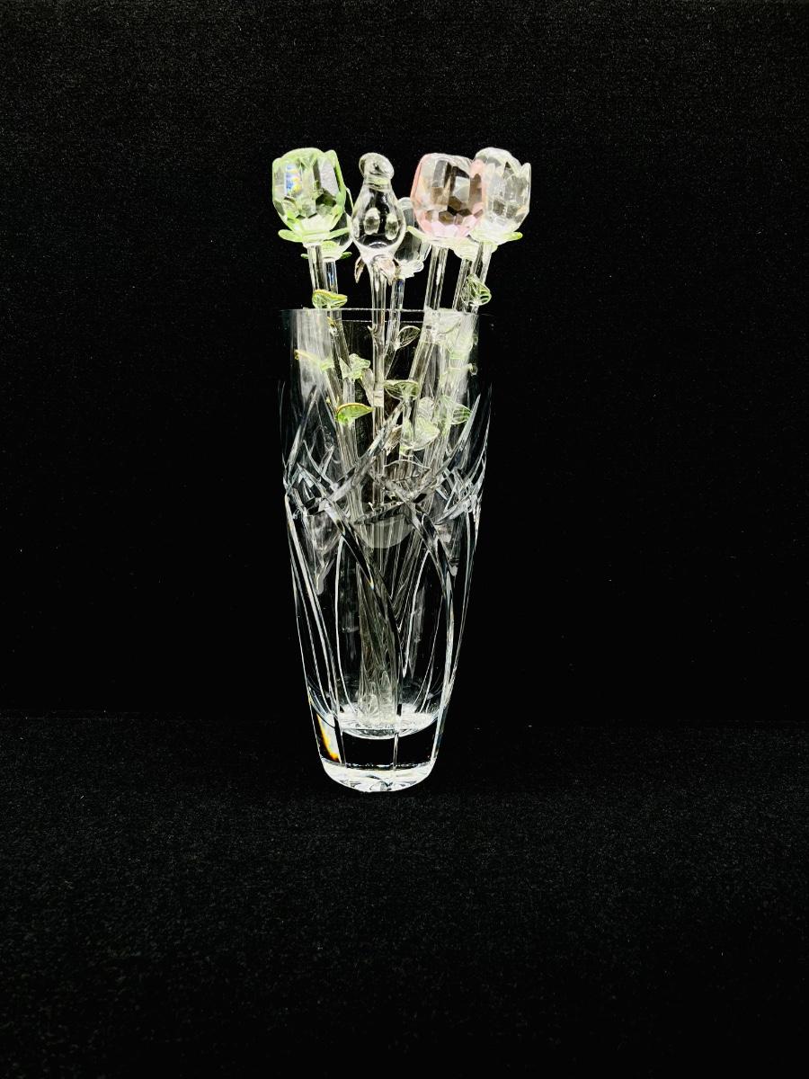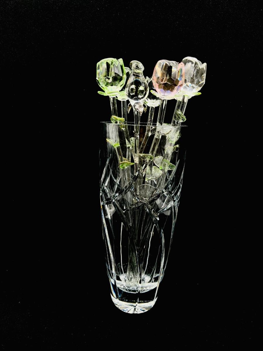 11” Heavy Cut Crystal Vase ~ Seven (7) Assorted Glass Roses