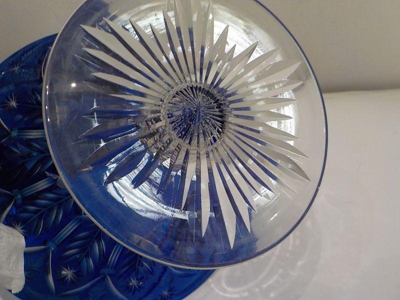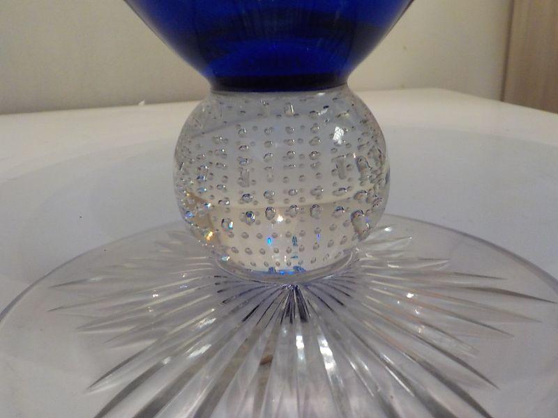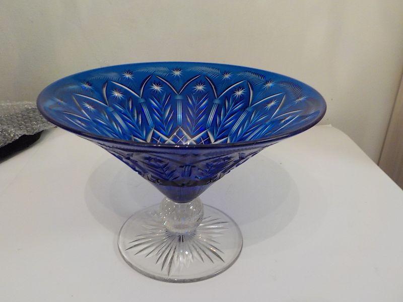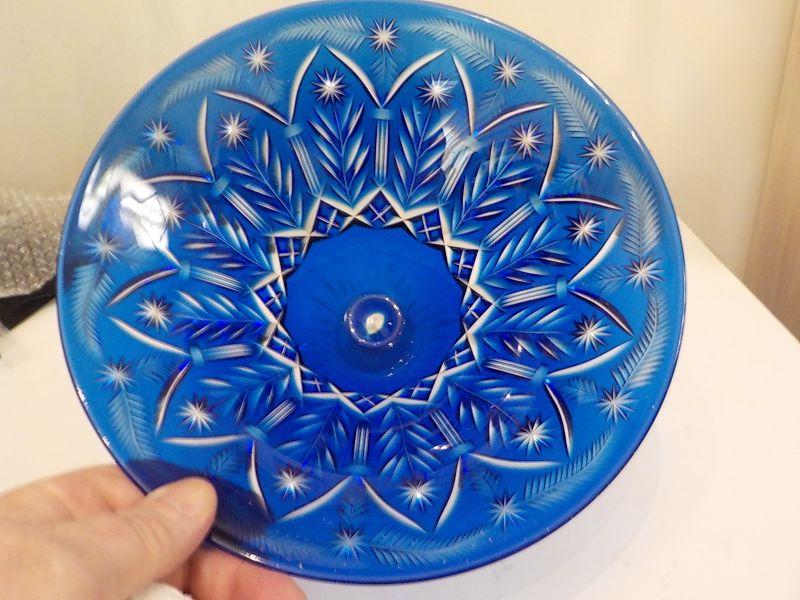 Eye popping cobalt blue pedestal mount 11 inch center piece bowl, Cut glass design and no chips or scratches.