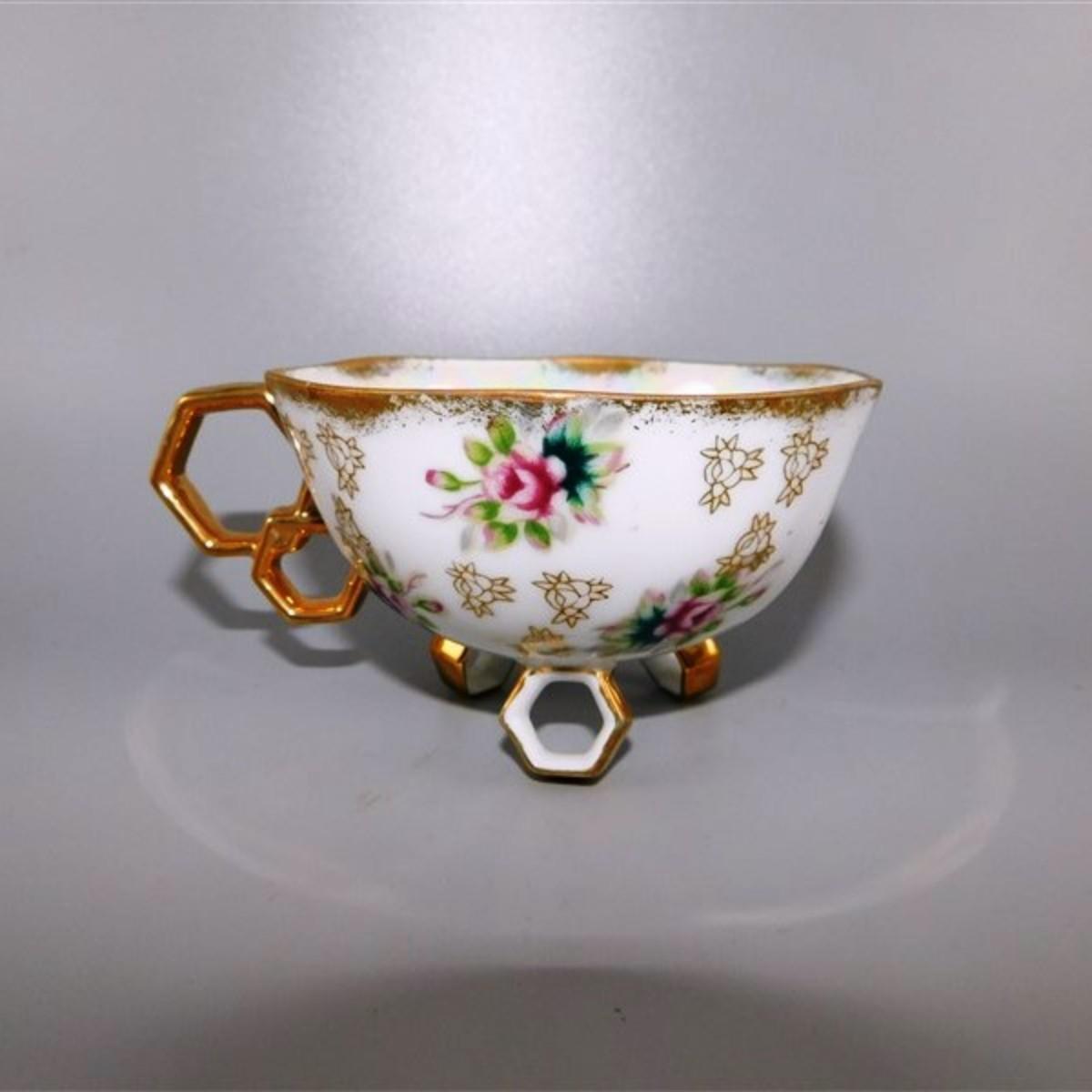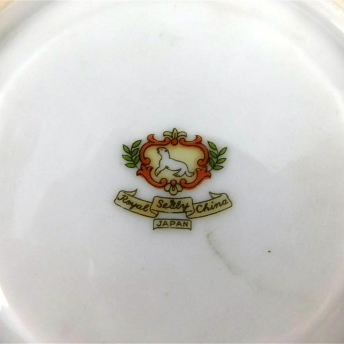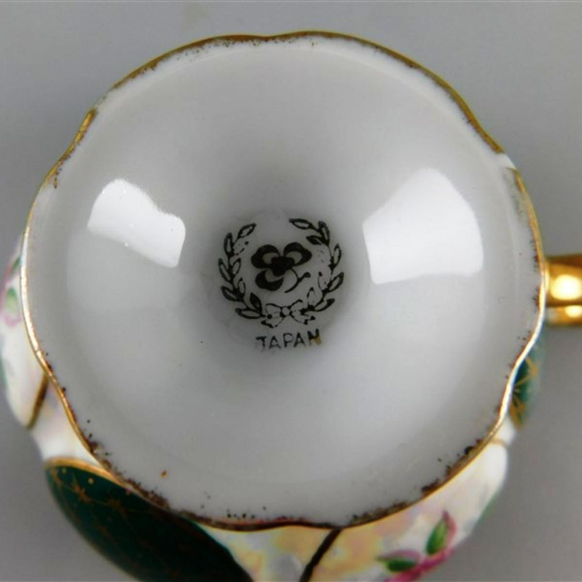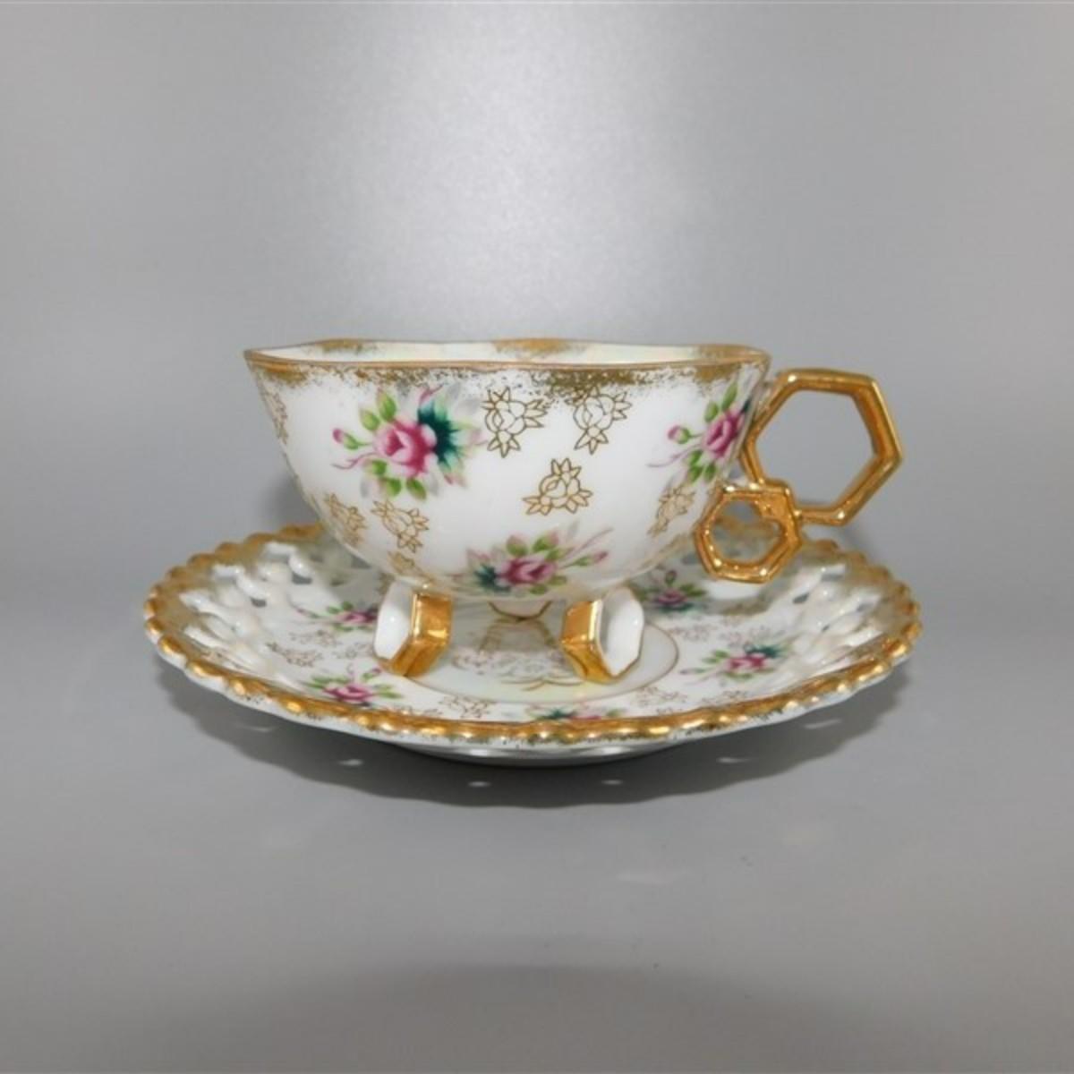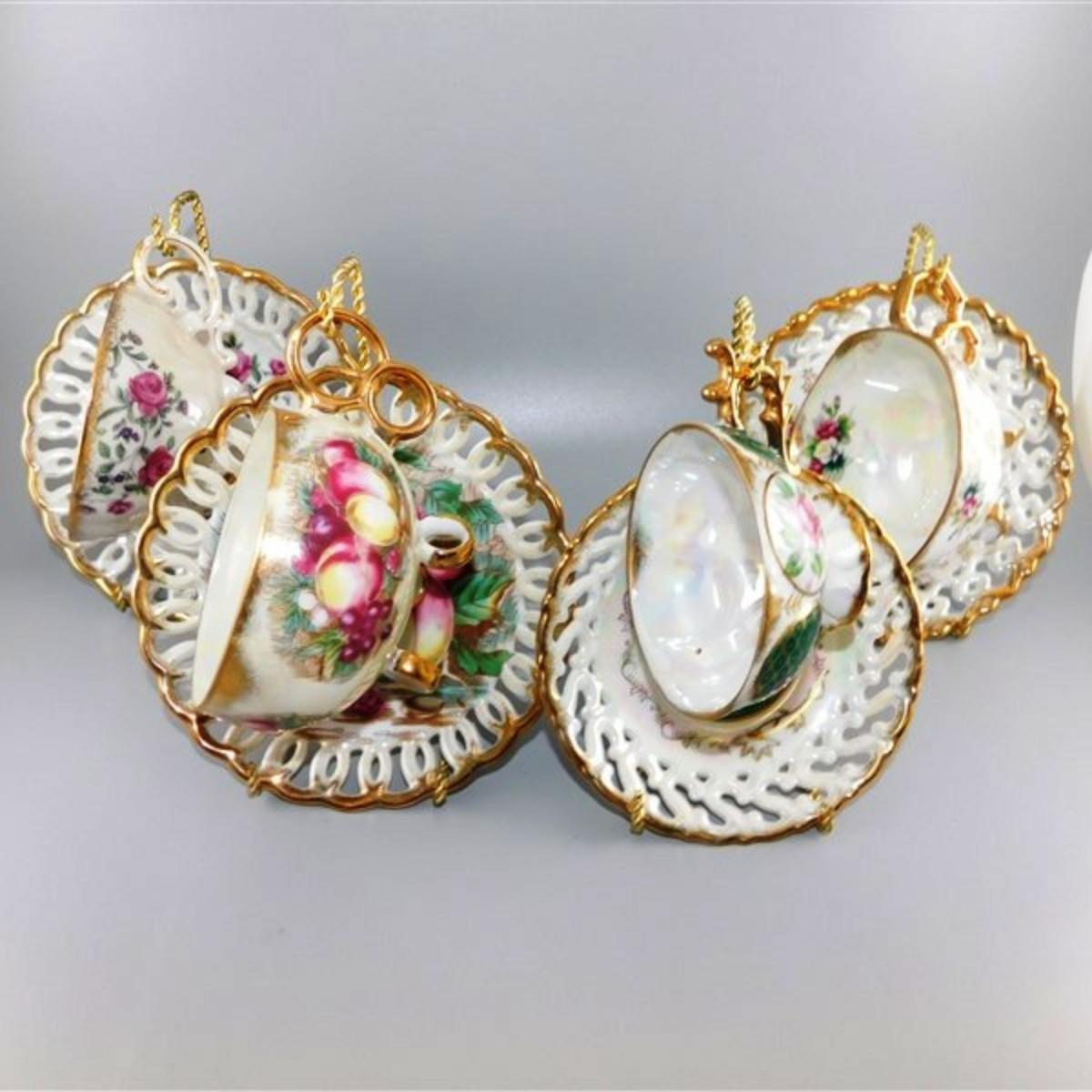 11 Lot of 4 Vintage Tea Cups and Reticulated Saucers with Stands- Royal Sealy / Fan Crest 2647 / Japan