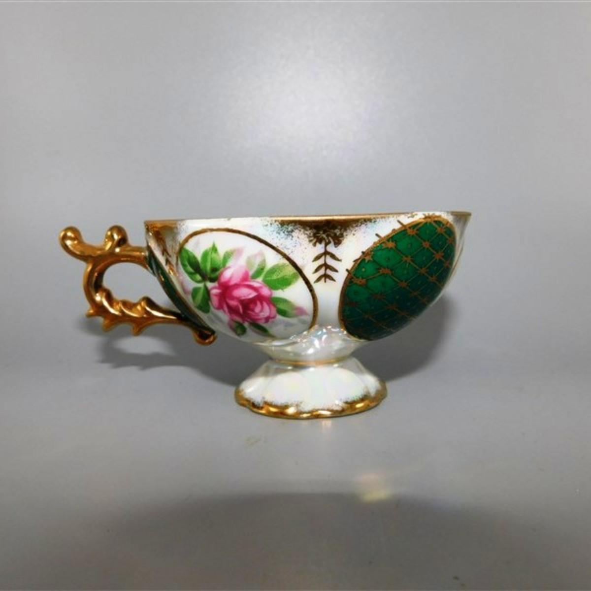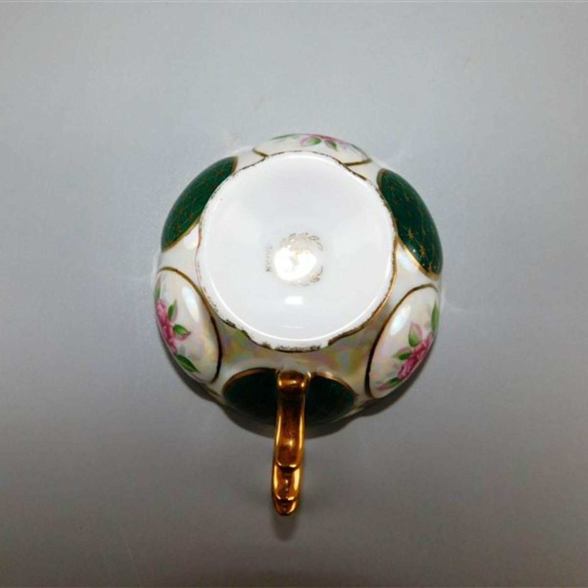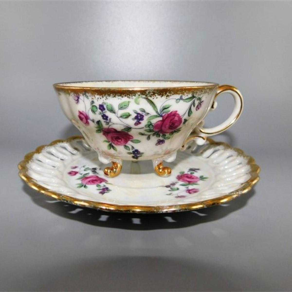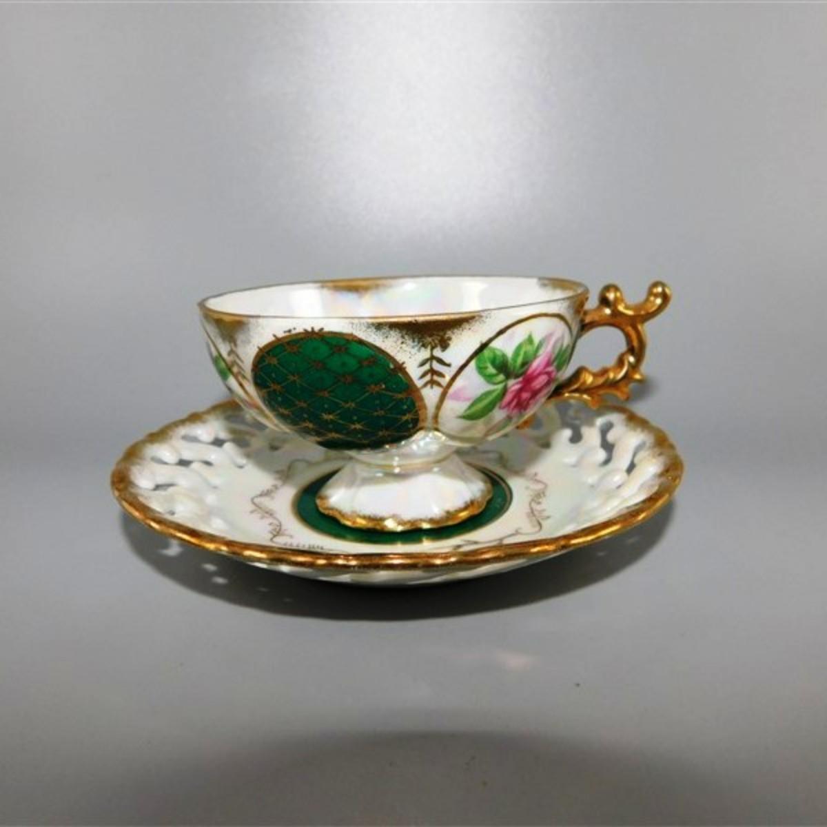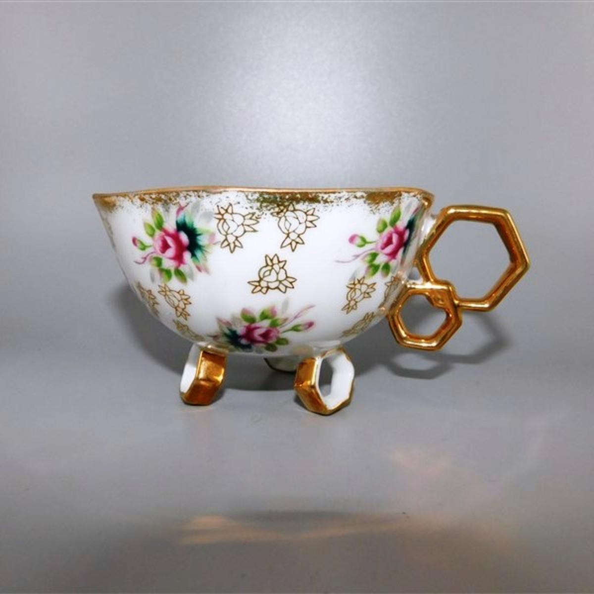 11 Lot of 4 Vintage Tea Cups and Reticulated Saucers with Stands- Royal Sealy / Fan Crest 2647 / Japan