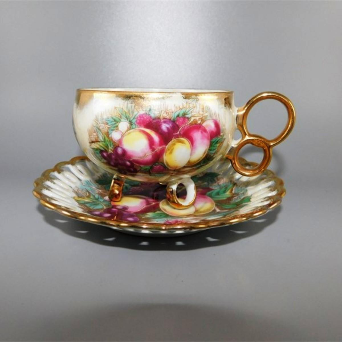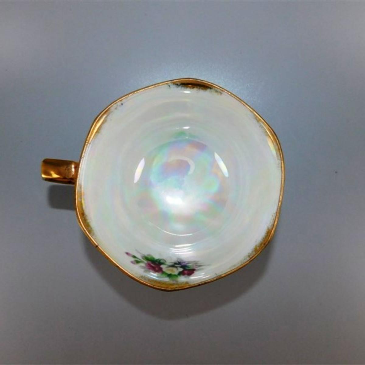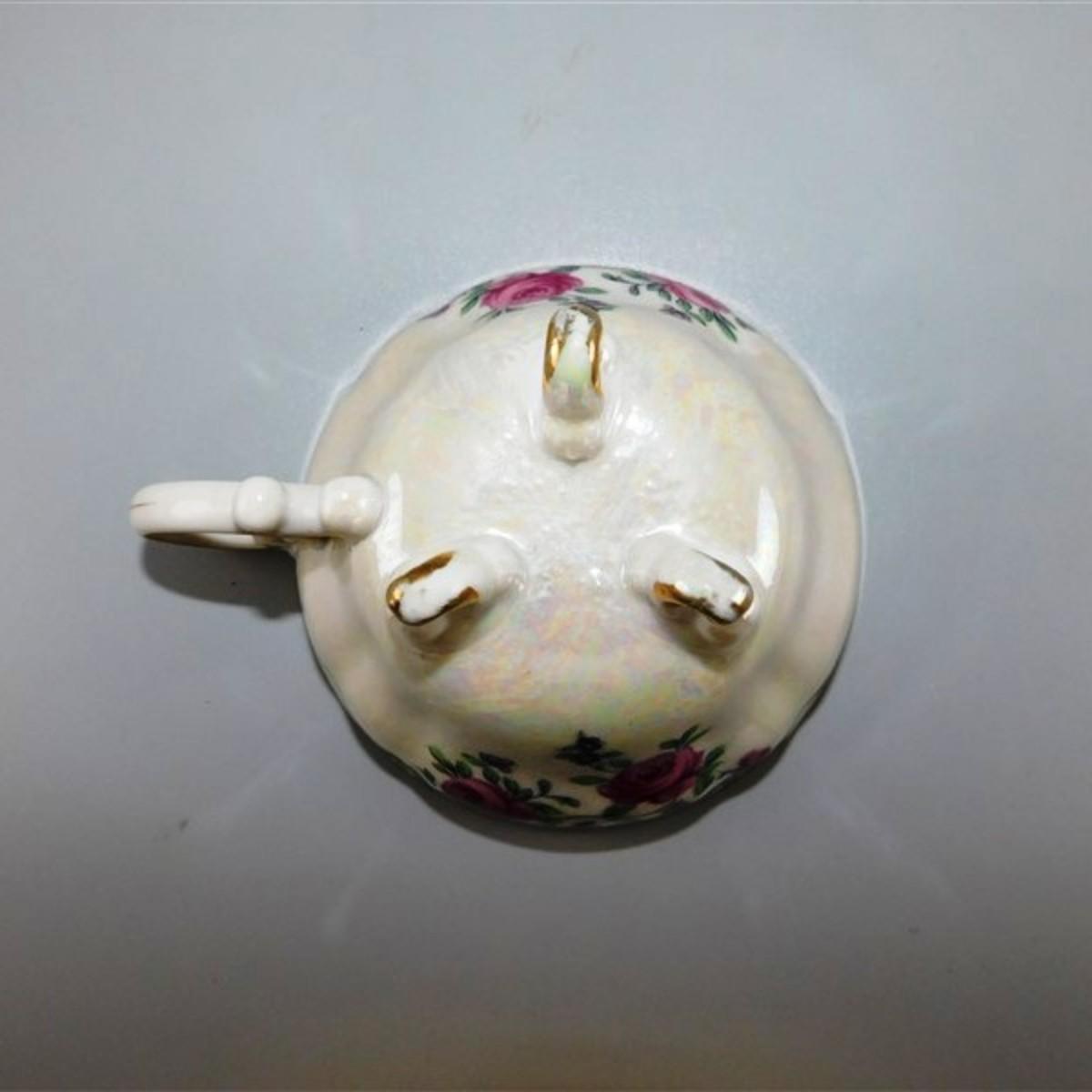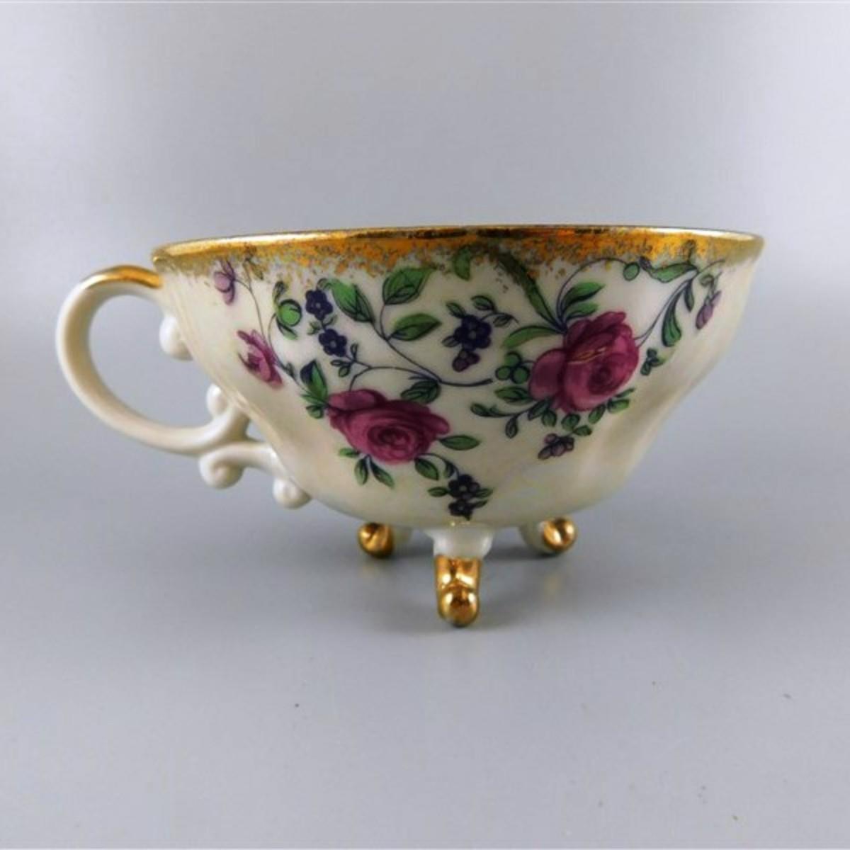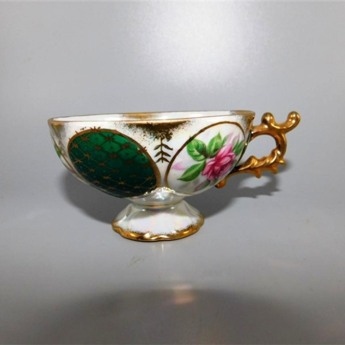 11 Lot of 4 Vintage Tea Cups and Reticulated Saucers with Stands- Royal Sealy / Fan Crest 2647 / Japan