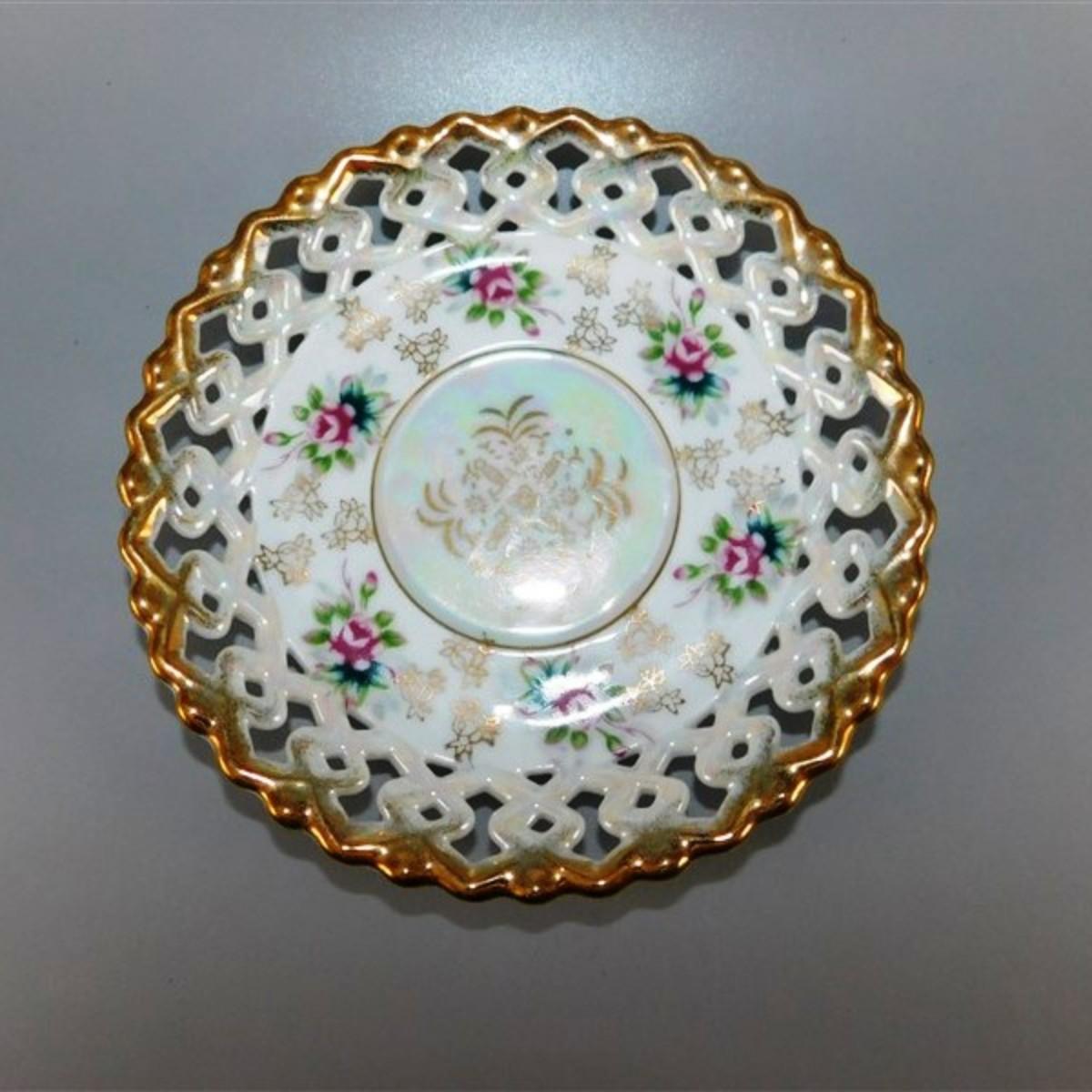 11 Lot of 4 Vintage Tea Cups and Reticulated Saucers with Stands- Royal Sealy /Fan Crest 2647/Japan