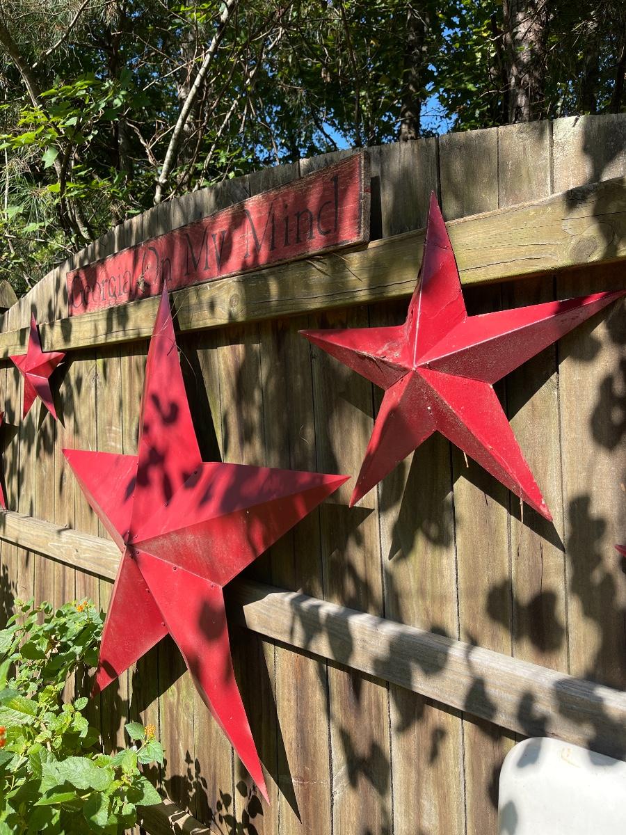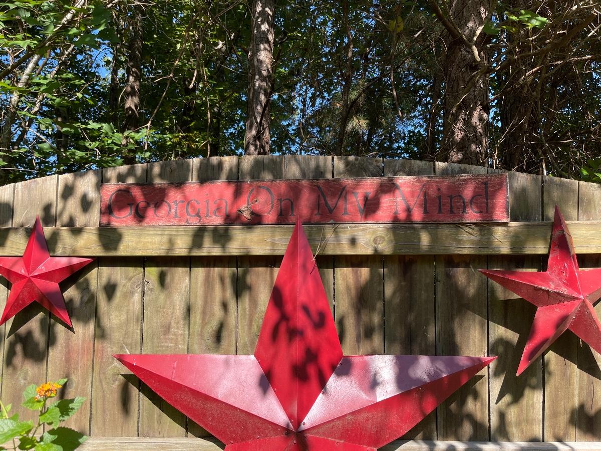 “Outdoor” 11 Metal Outdoor Red Stars & “Georgia On My Mind” Sign