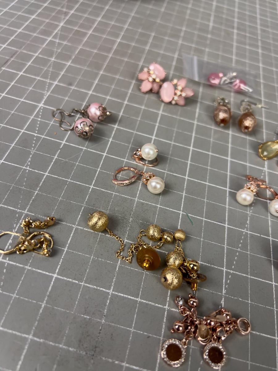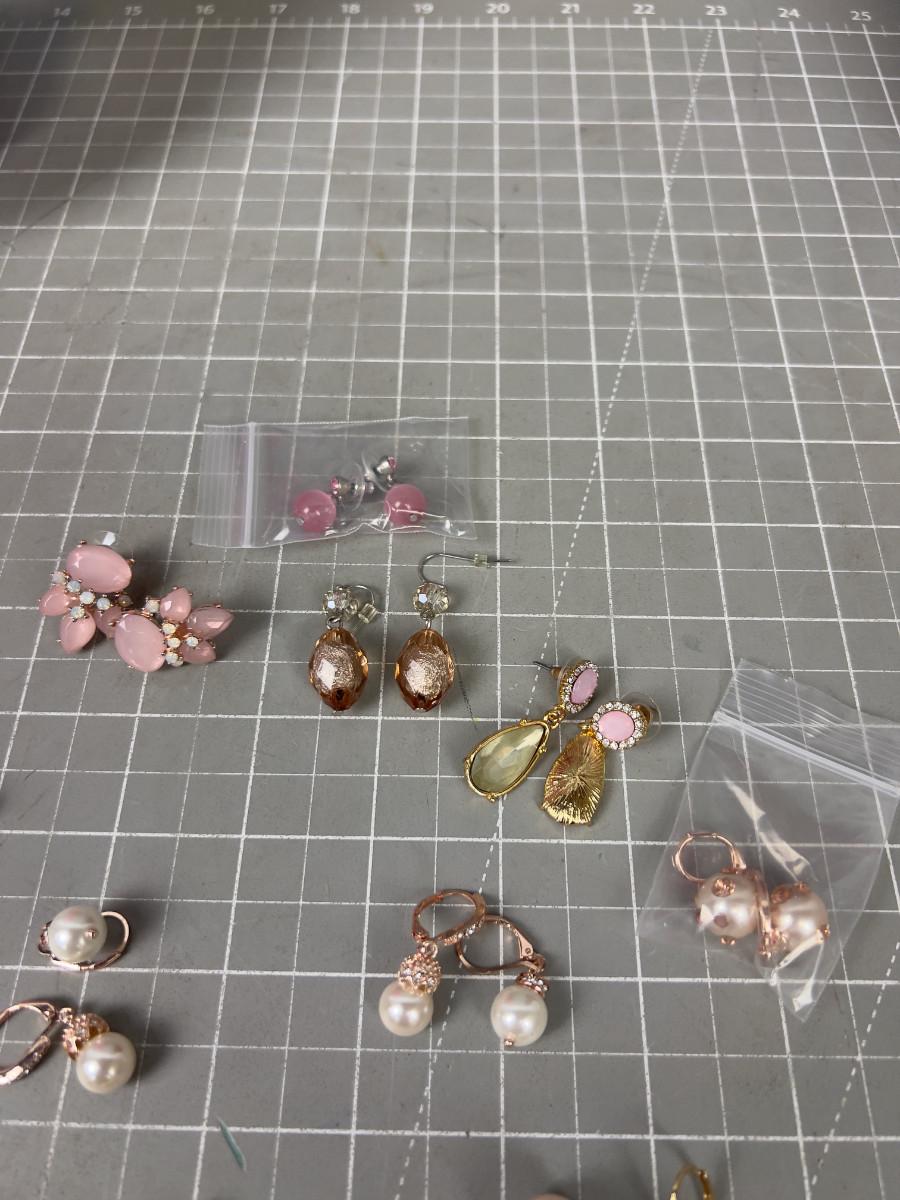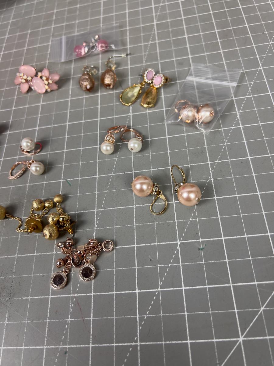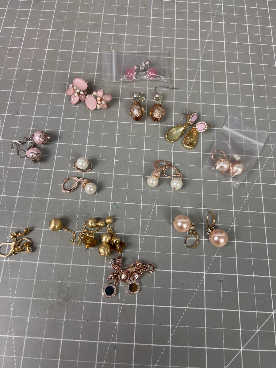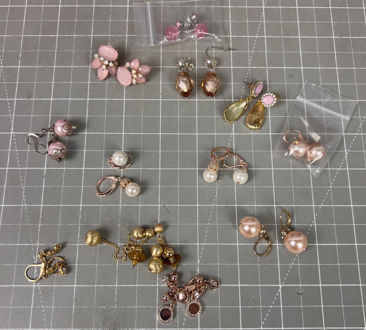 11 Pair of Pink / Rose Goldish Theme Costume Jewelry Earrings