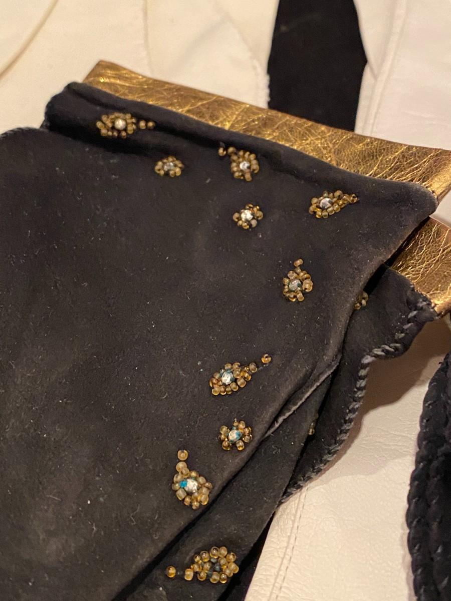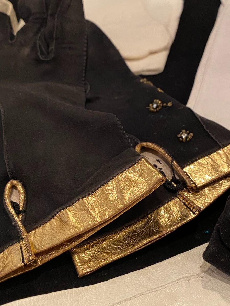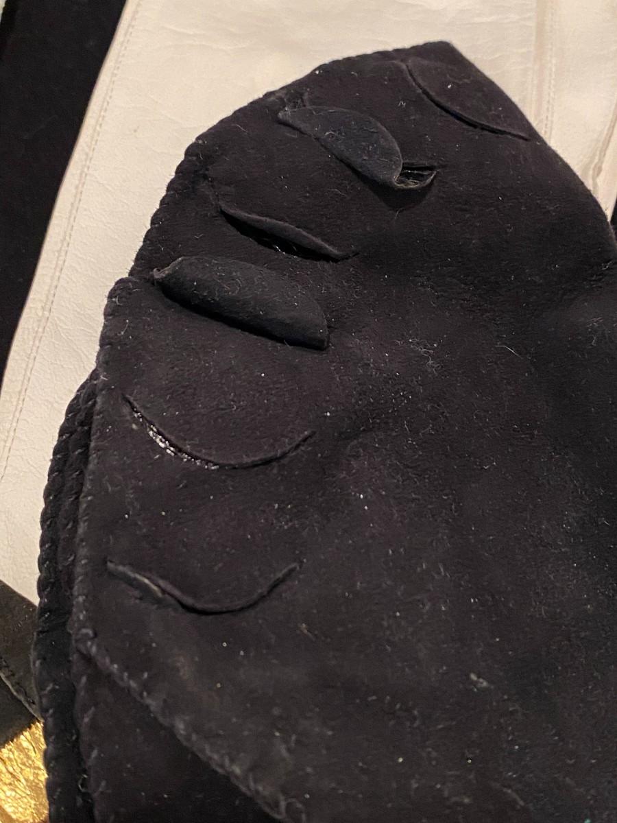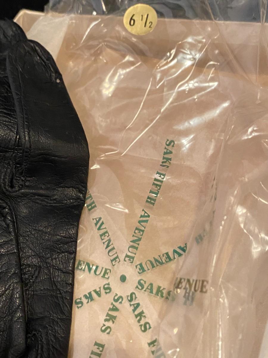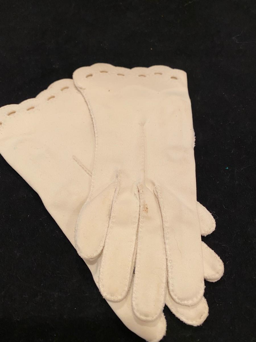 11 unique pairs of vintage leather and cloth gloves. Multiple appear not to be worn. One pair is white leather with tag still on is made by Grenoble, and a size 7 (which is most likely indicative of the sizes of the other pairs). Condition as shown.