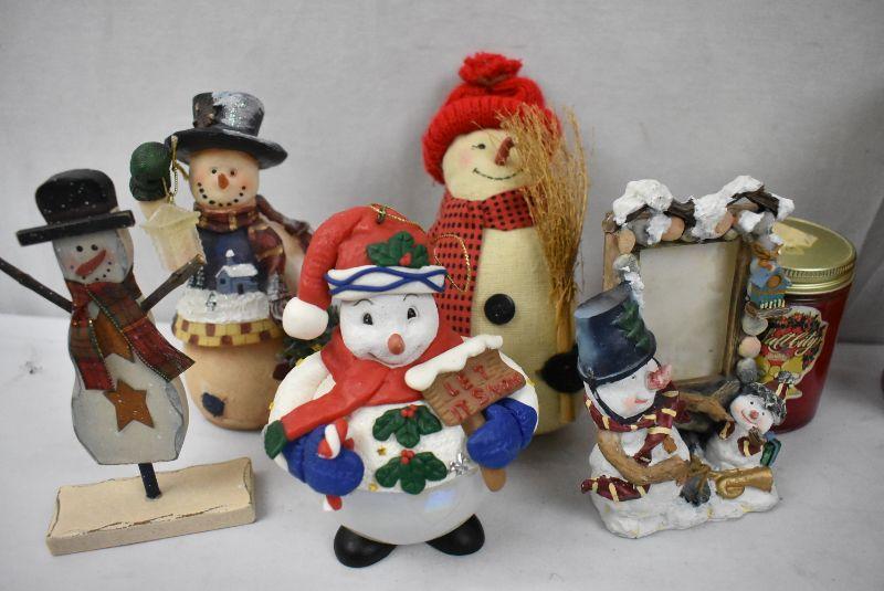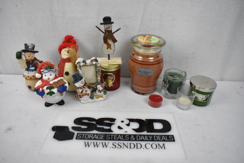 11 pc Christmas Decor: 5 Snowmen & 6 Candles