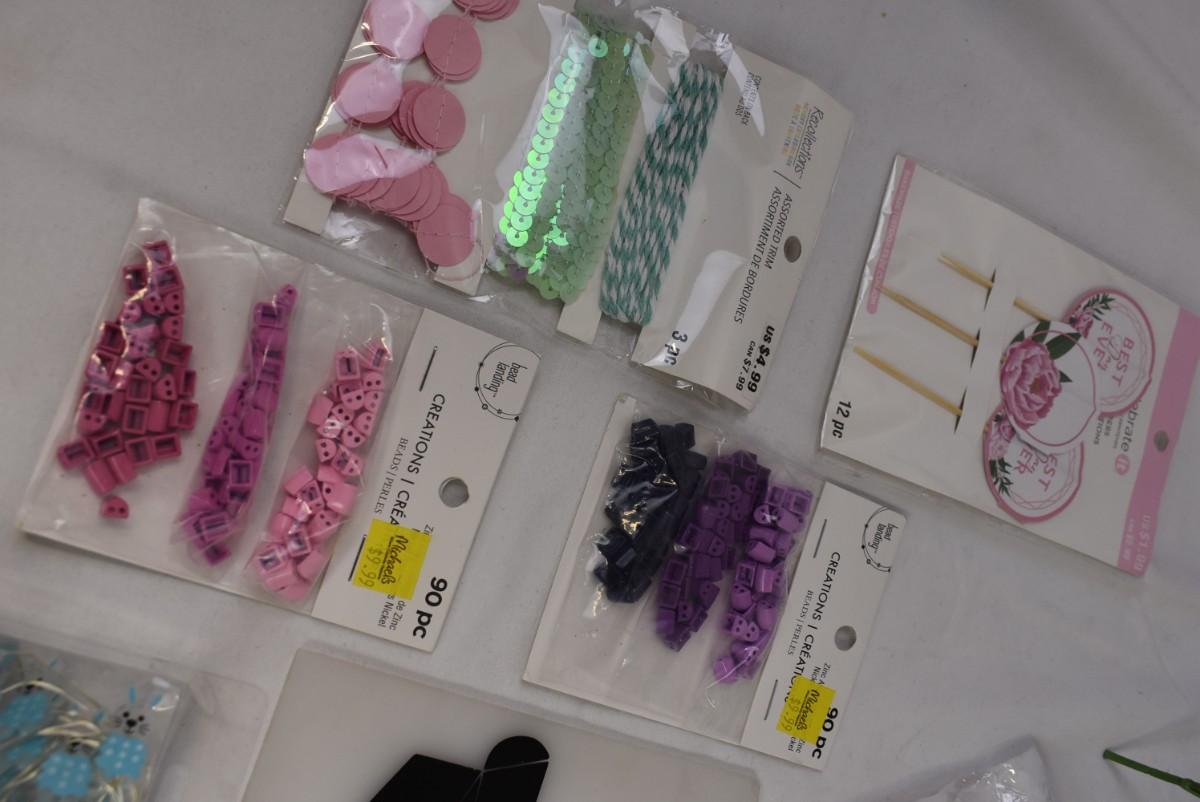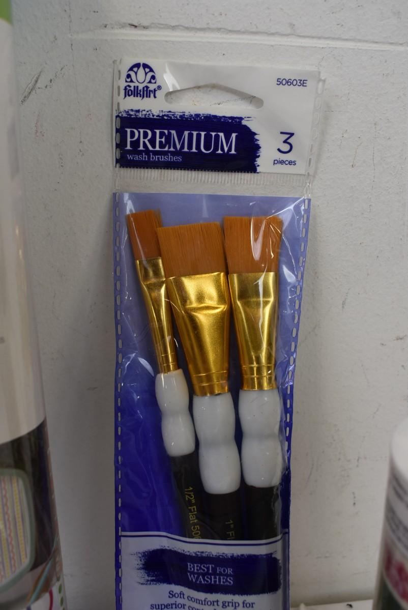 11 pc Craft Lot: Paint brushes, coasters, beads, trims, petals - New