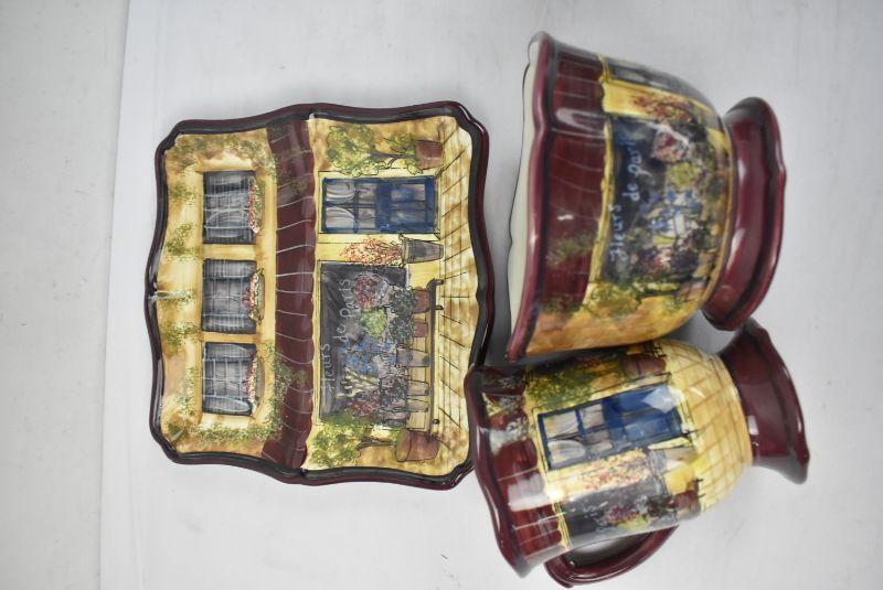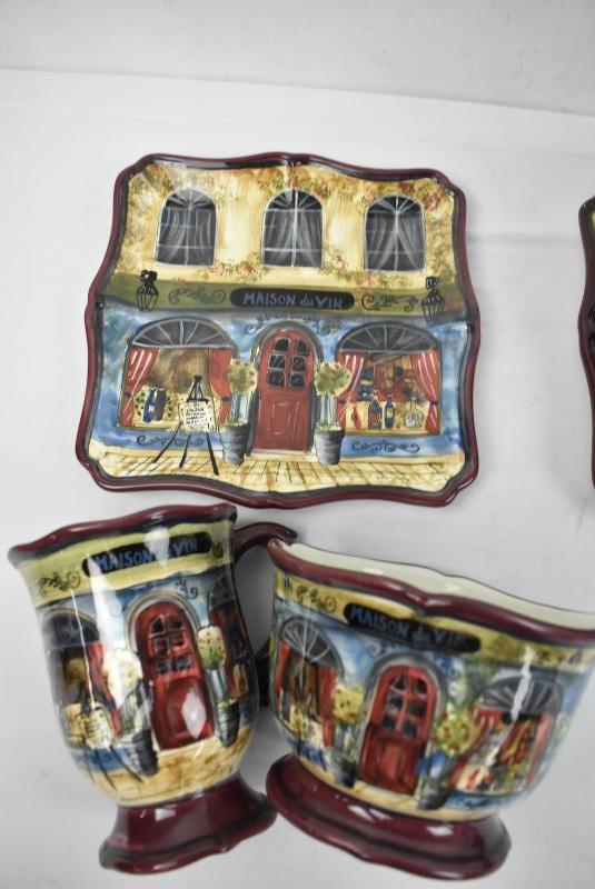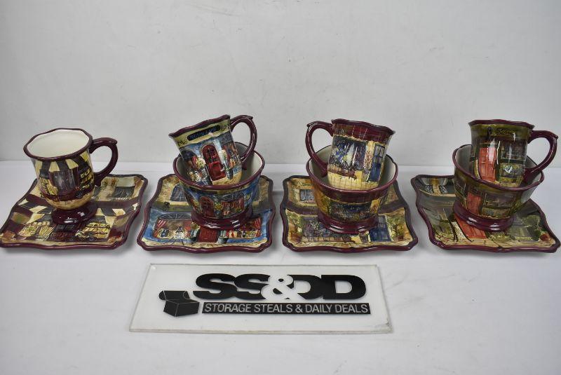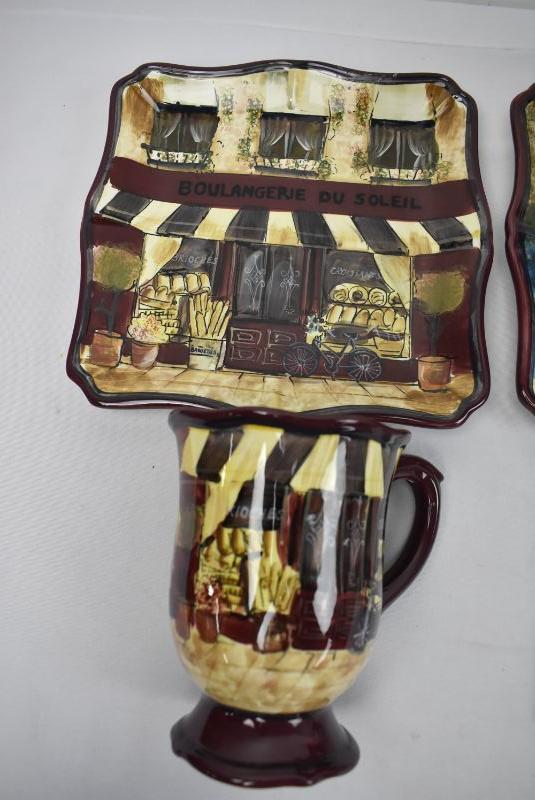 11 pc Dishware: 4 plates, 3 bowls, 4 Cups: Painted Paris Images by Kate McRostie