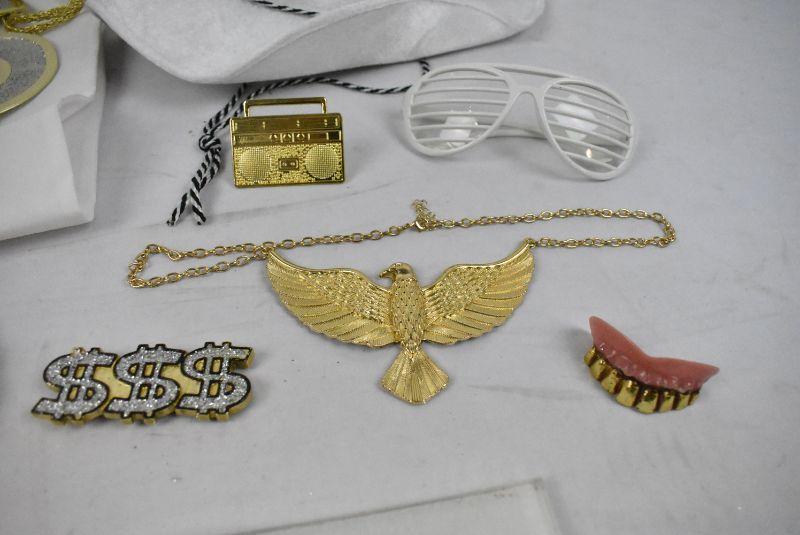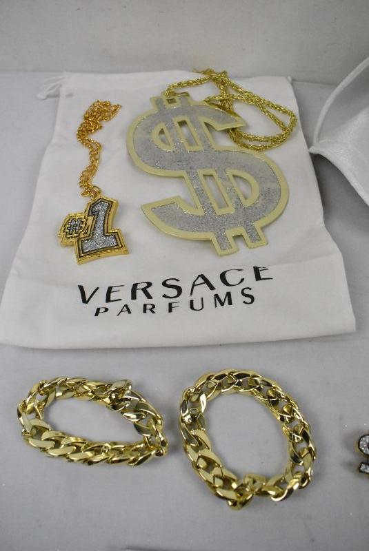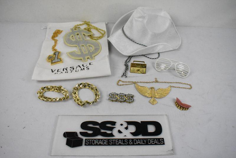 11 pc Halloween Costume Accessories: Rap Star/Producer Lots of "Gold" Bling