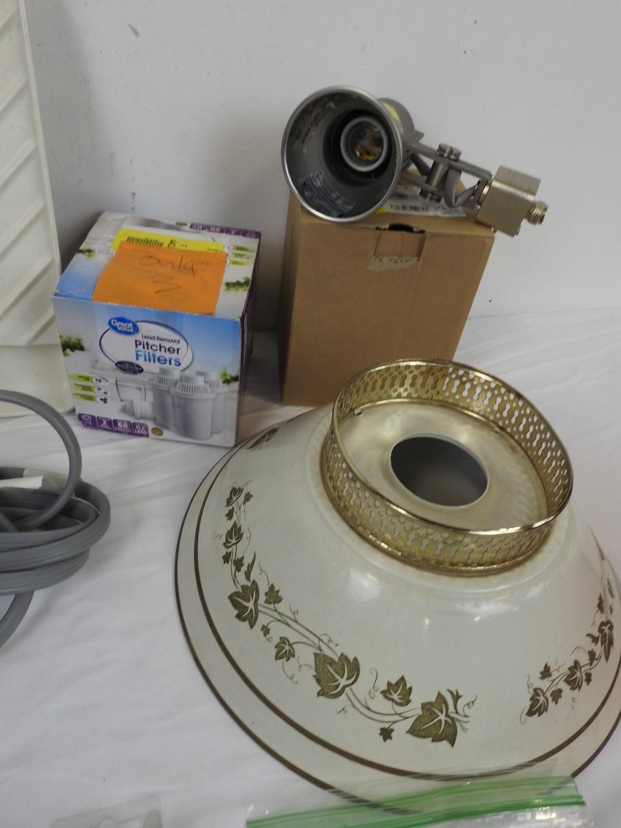 11 pc Home Goods/Home Improvement: Gray Garbage Can, Water Filter, Cleanser